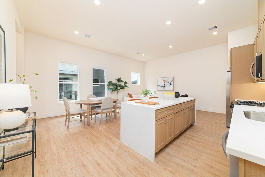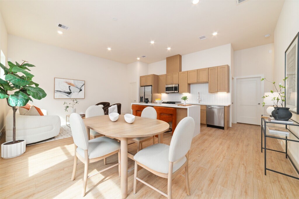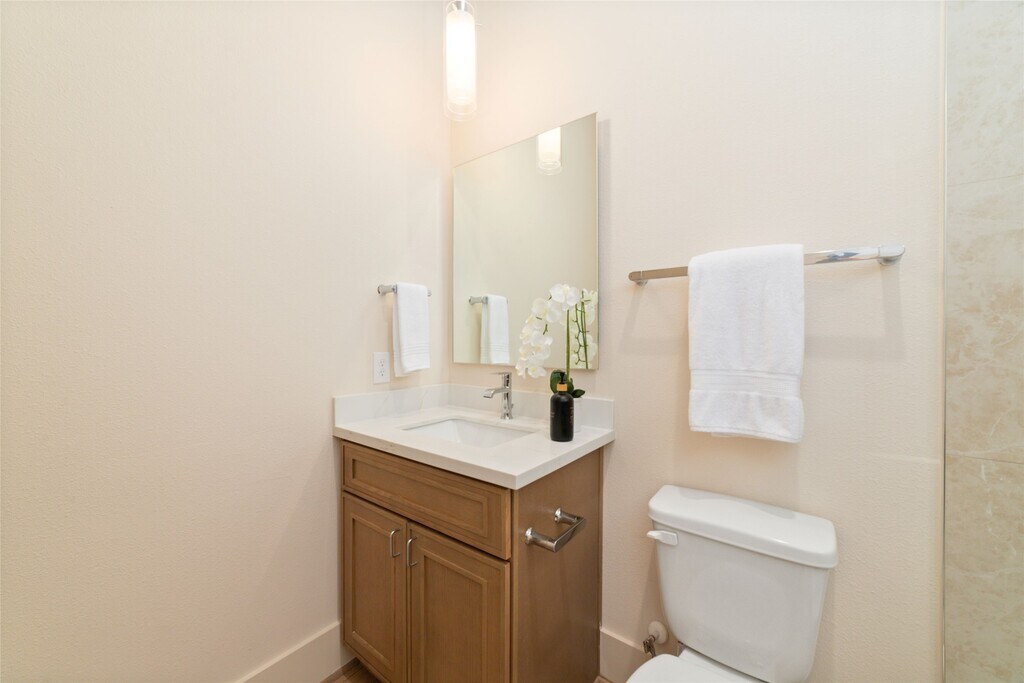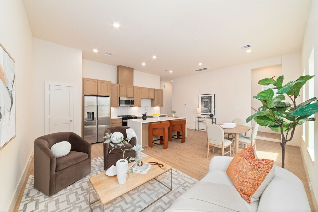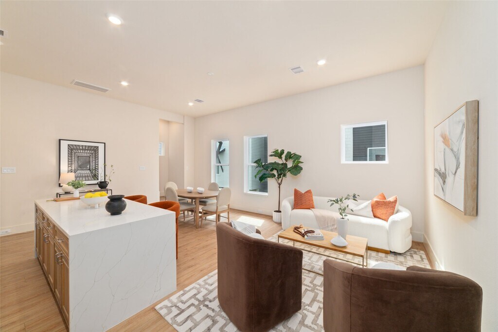 Stunning new construction 3-level home offering 3 beds and 3.5 baths,located in a private gated community. From the moment you enter,you will notice the beautiful engineered wood flooring and tall ceilings that carry throughout the home. 1st level includes a 2 car garage,1/2 bath. 2nd level serves as the main living area and features a gorgeous kitchen with a waterfall island and breakfast bar,gas range,stainless steel appliances,quartz countertops,undermount farm sink,and under-cabinet lighting. Kitchen opens seamlessly to the combined living and dining areas. Also located on this level is a private bedroom with a full ensuite bath. 3rd level offers secondary bed with its own ensuite bath,along with the impressive primary suite. Large primary bedroom has vaulted ceilings,and a spa-inspired ensuite bath w/dual sinks,a vanity,soaking tub,glass shower,and an expansive walk-in closet. Rare highlights of this property is the private,fully fenced backyard. MLS# 28286483