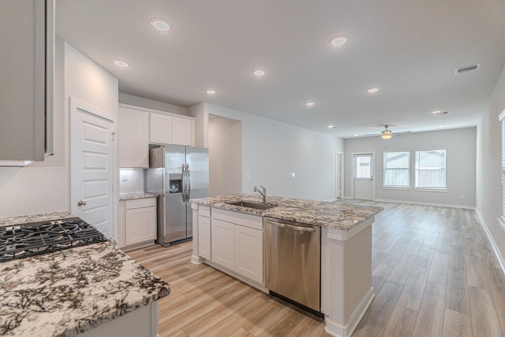 Located in the desirable Lakes at Black Oak,this brand-new,never-lived-in home features the Brazo floor plan by Davidson Homes. This two-story,fully bricked residence offers 5 bedrooms and 3 full bathrooms. The primary suite is located on the first floor,along with an additional secondary bedroom downstairs—ideal for guests,a home office,or multi-generational living. The remaining three bedrooms are upstairs,providing privacy and comfort.The open-concept kitchen flows seamlessly into the living area,making it perfect for everyday living and entertaining. Upstairs,a spacious game room offers flexible use as a media room,playroom,or office. The home features no rear neighbors,a fully fenced backyard,and a covered patio with an extended slab for outdoor amenities include a splash pad,playground,soccer field,and a scenic lake with walking trails and a dock. Conveniently located near major highways,shopping centers,and top-rated schools. Move-in ready. MLS# 73354663