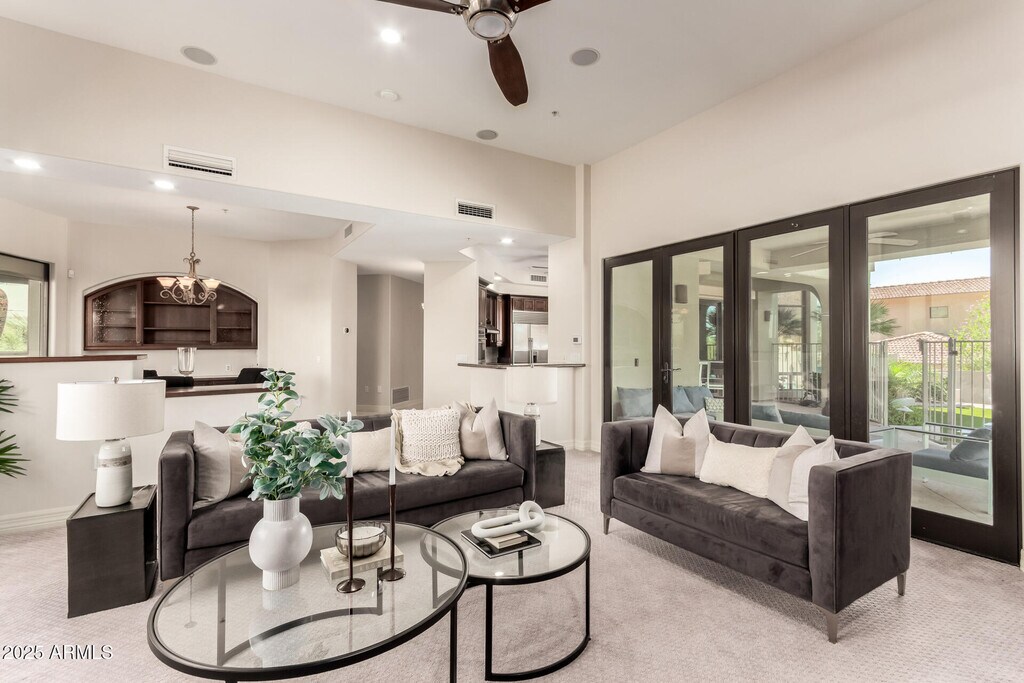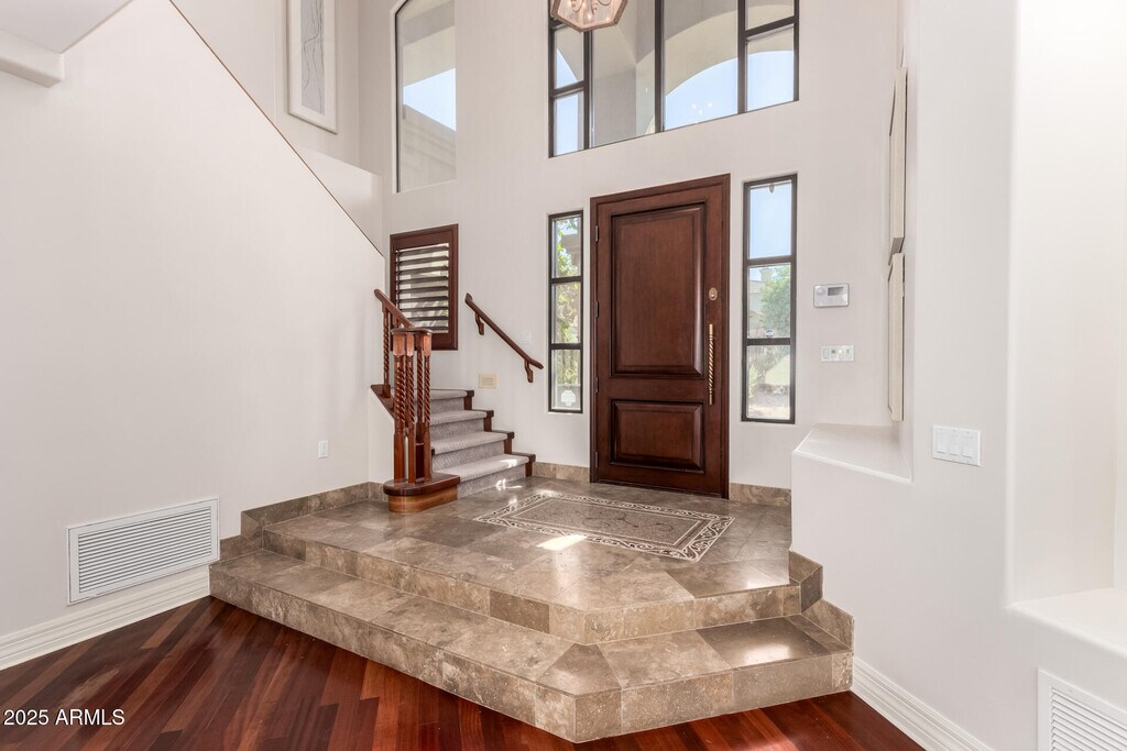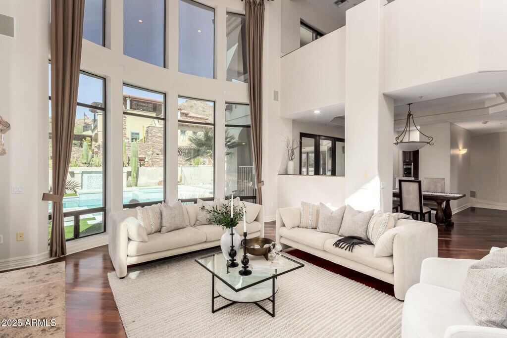 Located in a gated community with private hiking trails,this 5BD,7BA luxury estate offers stunning mountain views from every room. Features include an elevator,rich wood floors,optimum living space,metal roll-down blackout shades,and a spacious upstairs loft. The chef's kitchen boasts high-end appliances,including a Sub-Zero fridge,and opens to an entertainer's wet bar. The owner's suite includes a large custom walk-in closet and spa-style bath. Enjoy an infinity-edge pool,outdoor BBQ,turf and paver yard,3-car garage,and newer HVAC. Every detail blends elegance and comfort,from floor-to-ceiling windows to designer finishes. Perfect for entertaining or relaxing in total privacy. Experience refined living in a truly exceptional home designed for today's luxury lifestyle.