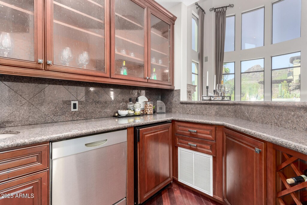 Rebecca KennardLocated in a gated community with private hiking trails, this 5BD, 7BA luxury estate offers stunning mountain views from every room. Features include an elevator, rich wood floors, optimum living space, metal roll-down blackout shades, and a spacious upstairs loft. The chef's kitchen boasts high-end appliances, including a Sub-Zero fridge, and opens to an entertainer's wet bar. The owner's suite includes a large custom walk-in closet and spa-style bath. Enjoy an infinity-edge pool, outdoor BBQ, turf and paver yard, 3-car garage, and newer HVAC. Every detail blends elegance and comfort, from floor-to-ceiling windows to designer finishes. Perfect for entertaining or relaxing in total privacy. Experience refined living in a truly exceptional home designed for today's luxury lifestyle.