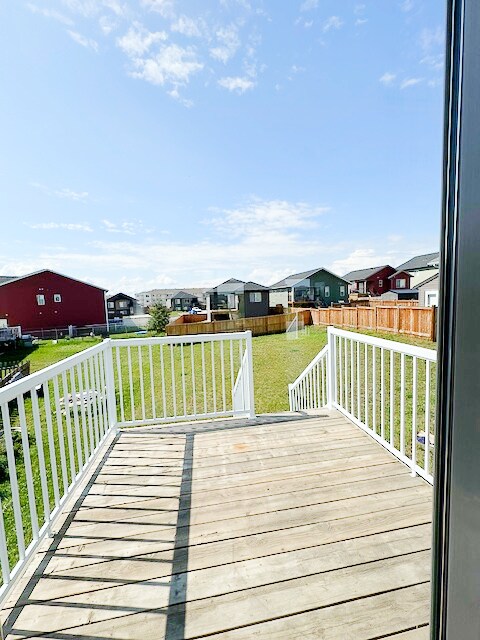 Modern upper suite offering 3 bdrms, 2 baths, front porch and rear deck overlooking a large open back yard (fully fenced). SST appliances, in-suite laundry, and conveniently located in Energy Park across the street from a green space. Close to an elementary school, high school, dog park and walking trails. This home is pet-friendly with owner approval. Monthly utility surcharges added: $150 electric, $80 gas and $80 city. Tenant must have insurance. Please apply online with Izon Realty: email inquiries: