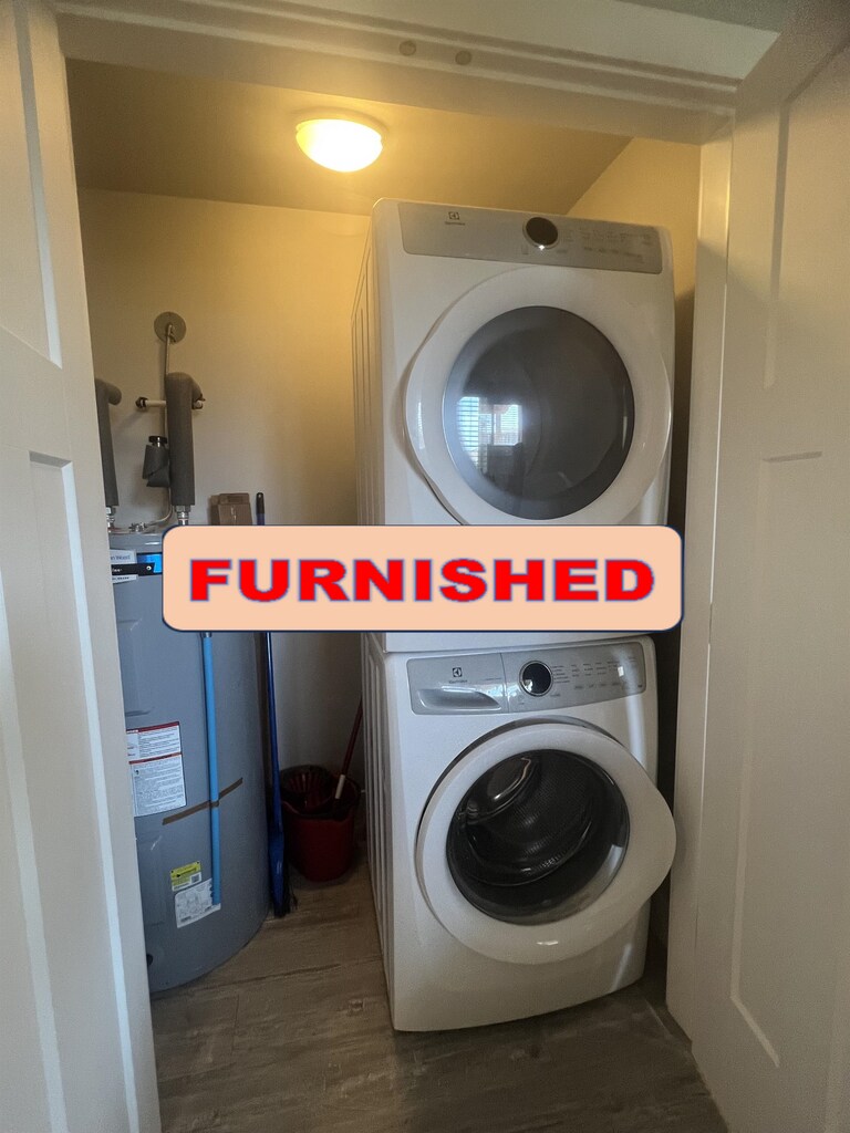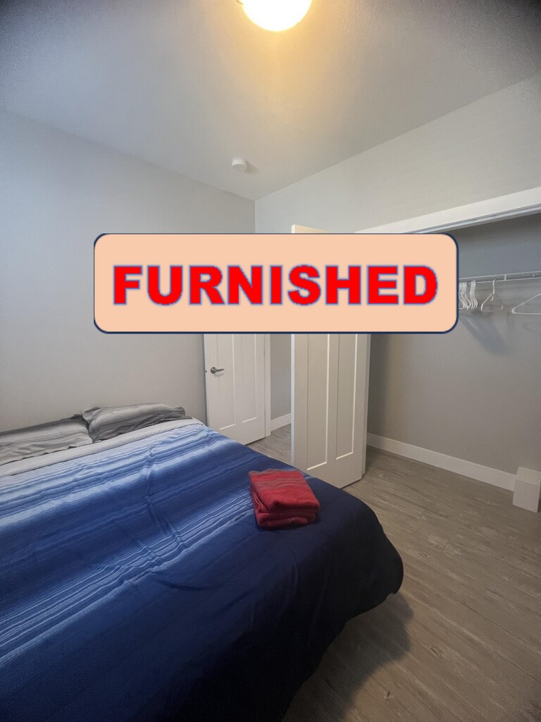FURNISHED & Fully equipped with kitchenware and linens. This modern 1 bdrm suite has an office and features 9ft ceilings, in-suite laundry and off-road parking. Includes WIFI. The lease can include utilities and housekeeping. Please apply online with Izon Realty: