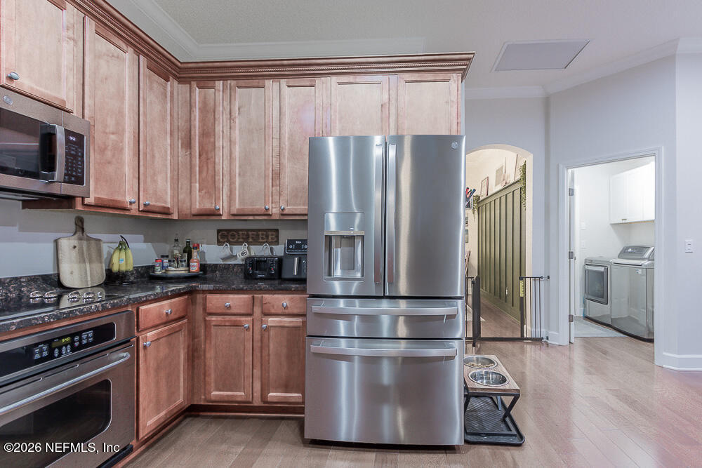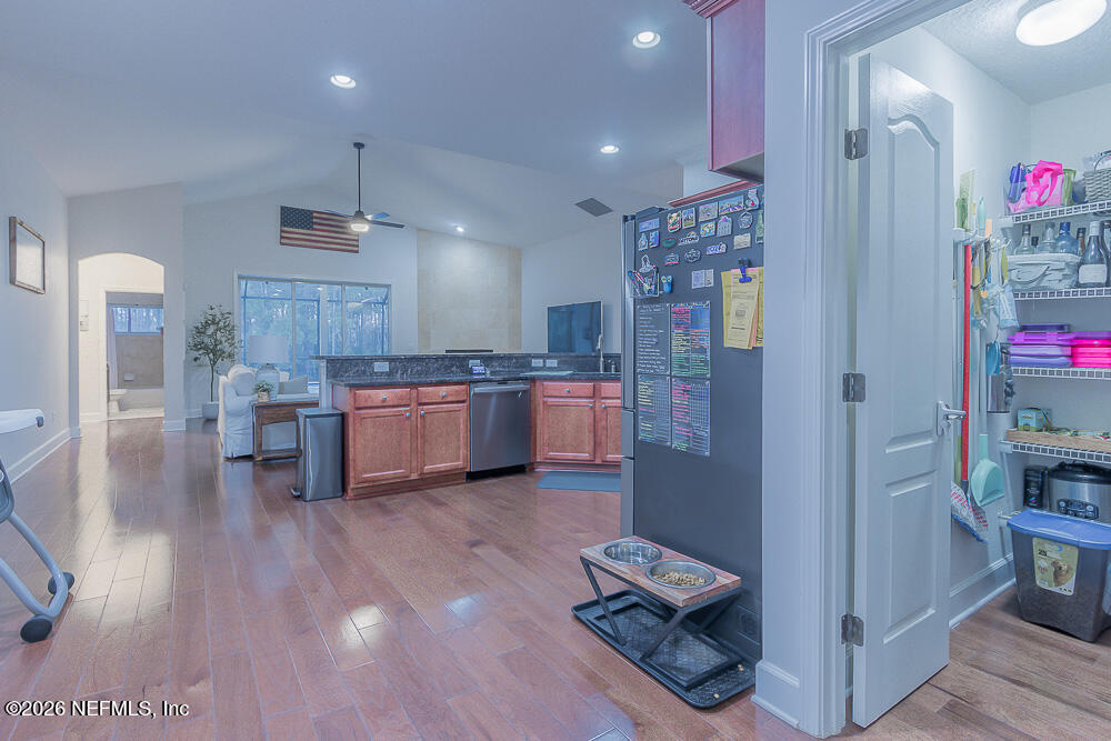 Do not miss this amazing private POOL!! Welcome to this beautifully maintained 4-bedroom,3-bathroom in the desirable Hickory Village community! This home features a spacious layout featuring an office/living room space to the right as you enter the foyer and a formal dining room on the left. The large living room flows seamlessly into the dining and kitchen area and offering ample flexibility to design spaces that suit your lifestyle. The kitchen is situated in the heart of the home and is the perfect space for family meals,gatherings and entertaining. The gourmet kitchen boasts granite countertops,wood cabinets,built-in convection oven,countertop cooktop,and a large walk-in pantry. Hardwood flooring in the main living spaces and carpet throughout the bedrooms creates a clean,modern feel. The primary suite features an ensuite bathroom with separate dual vanities,a garden tub,a tiled walk-in shower and his-and-hers walk-in closets. The next item up for description is a true family favorite,being the gigantic covered and fully screened stunning inground pool with paver deck. The SALT water pool is heated and pool maintenance is included. The screen features no-see-um screening,so you can enjoy time outdoors without having to deal with pests! This outdoor space is so incredibly appealing for dining,relaxing,watching the game,enjoying your morning coffee and later that much deserved libation. For convenience,the third bathroom connects directly to the pool. Just off the screened lanai is the private backyard offering plenty of room to view the preserve. The home includes an extended driveway with a concrete pad flowing along the left side of the home for RV/Camper storage. This property comes with a washer and a dryer. Pool maintenance is included with this home. MLS# 2130757