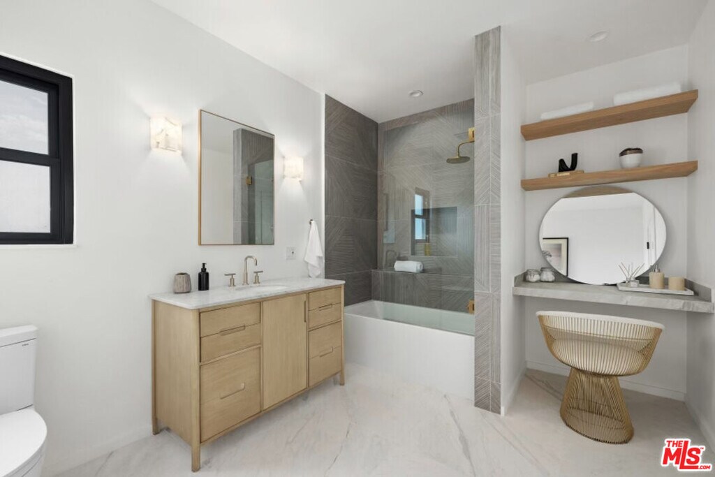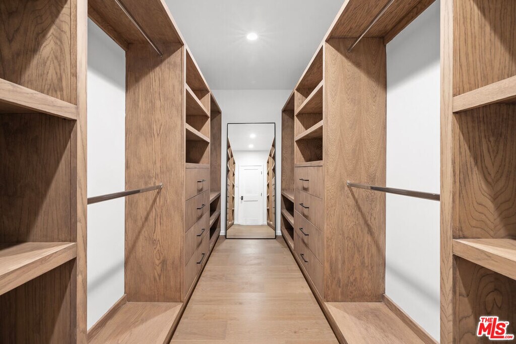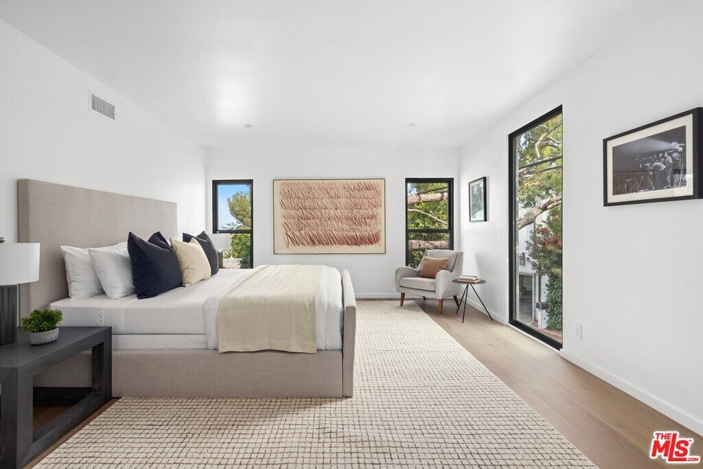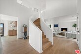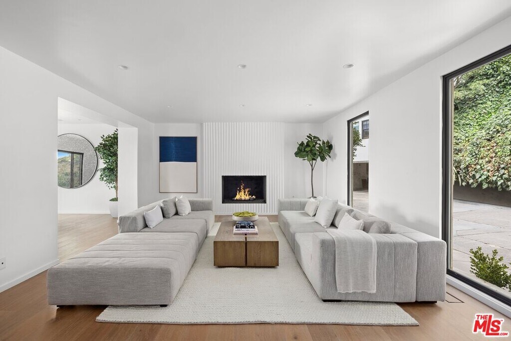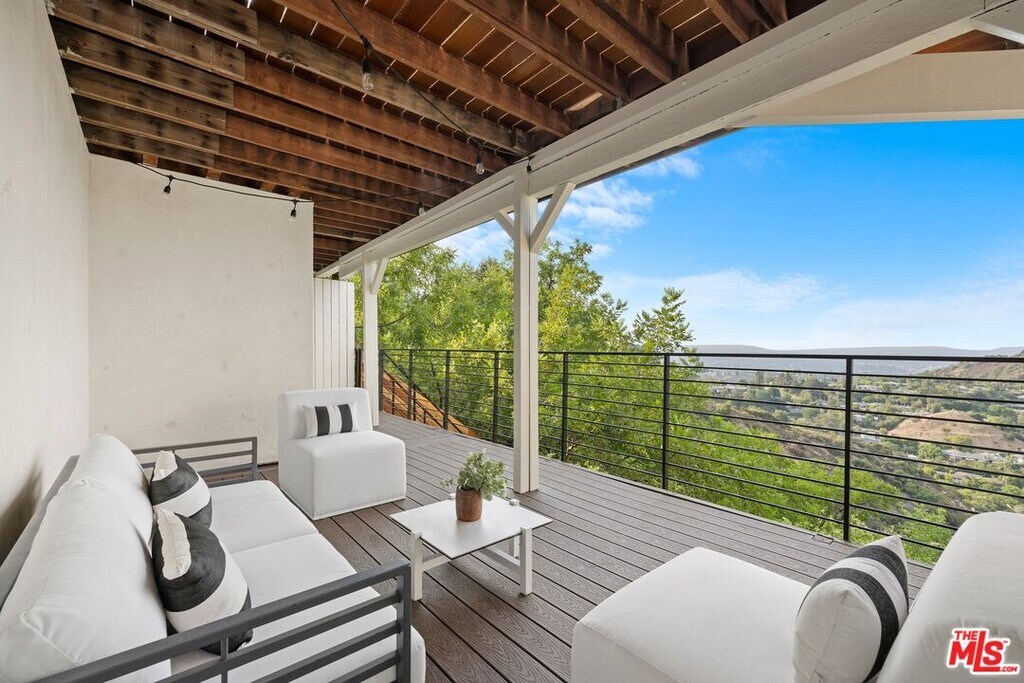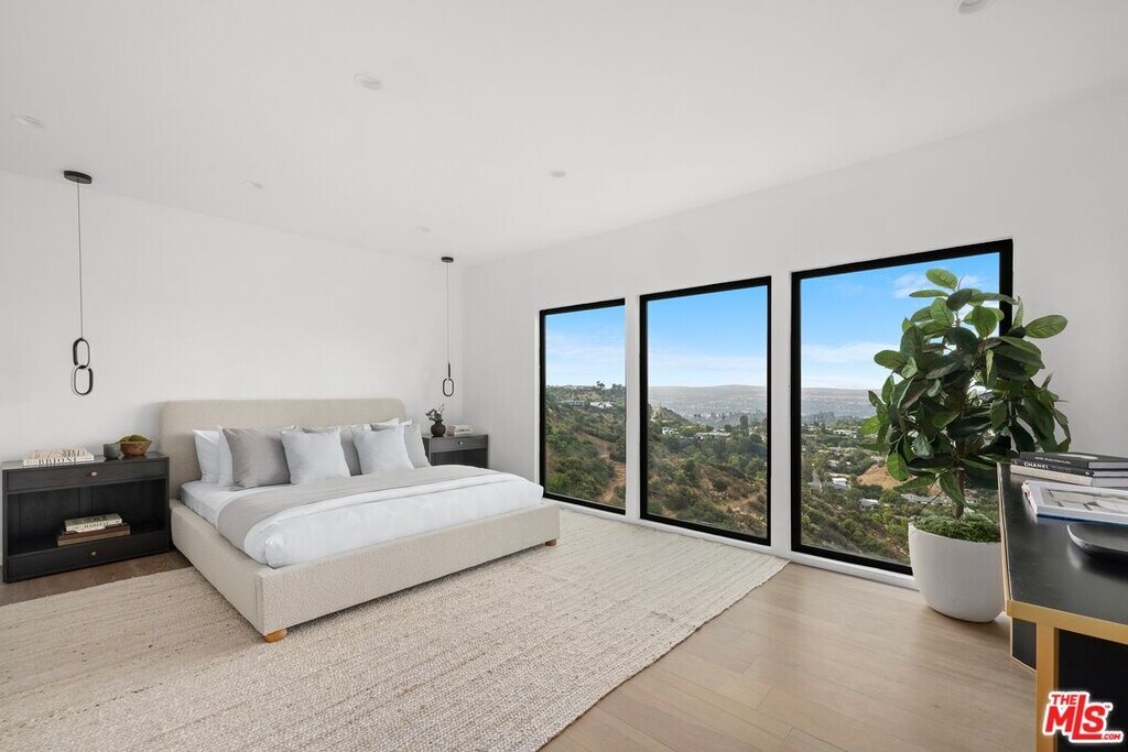 High above Laurel Canyon, the Skyline Residence is a private retreat where sweeping city and mountain views frame every moment. Expansive decks and a heated pool create an unmatched vibe--perfect for sun-soaked days, unforgettable nights, and effortless entertaining. From the moment you arrive, the home makes a striking impression. A sculptural curved plaster staircase rises beneath soaring ceilings, setting the stage for a space designed for both sophistication and comfort. The main level flows effortlessly from a statement-making living room to a dining area and into a chef's kitchen appointed with custom oak cabinetry, quartzite counters, and top-of-the-line appliances. Walls of glass slide away, extending the living space onto the deck in a seamless expression of indoor-outdoor living--the very essence of the California lifestyle. The upper deck boasts a heated pool with panoramic city views and space for dining or lounging. Below, a covered terrace invites yoga sessions, cocktails, or shaded afternoons, while a private staircase winds down to a landscaped garden retreat. Upstairs, the primary suite is a true sanctuary. Wake up to walls of glass framing the skyline, then escape to a spa-like bath with a freestanding tub, stone-clad shower, custom vanity, and skylight that bathes the space in natural light. A boutique-style walk-in closet completes the suite. Two additional bedrooms and a sleek full bath offer flexibility for family or guests. The lower level is pure indulgence--an entertainer's playground with multiple lounge areas, a striking custom bar, and even a hidden room tucked behind a bookshelf. The possibilities are endless: office, screening room, recording studio, wine cellar, or wellness lounge. Smart home features include a Lutron lighting system, integrated speakers, and a two-car garage. Situated on a quiet street in Laurel Canyon within the coveted Wonderland School district, you'll enjoy unmatched privacy just minutes from the energy of West Hollywood, Beverly Hills, and Studio City. The Skyline Residence isn't just a home it's a lifestyle, a statement, and a masterpiece of design. MLS# 25580607