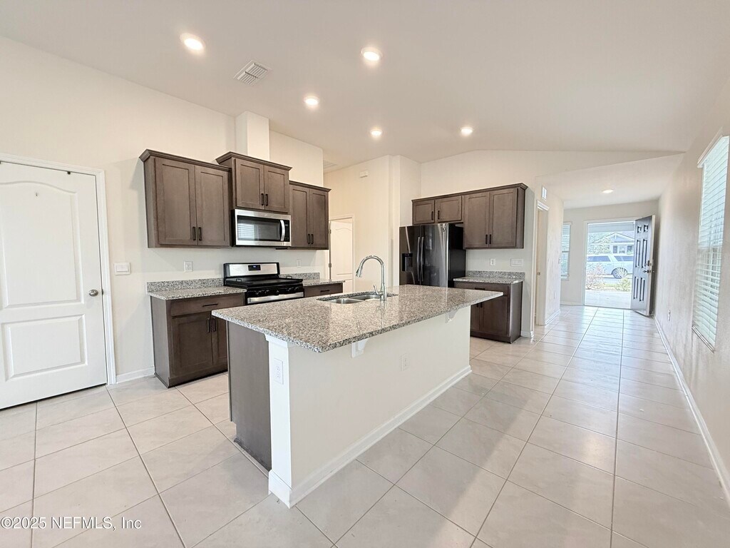 This nearly new waterfront home offers a bright,modern layout with thoughtful finishes throughout. The open-concept living space features tile flooring,recessed lighting,and a seamless flow into the kitchenideal for everyday living and entertaining. The kitchen is highlighted by a large center island with granite countertops,dark wood cabinetry,stainless steel appliances,and ample prep and storage space. Natural light fills the home,creating an airy and welcoming feel. The primary suite includes a spacious bathroom,a large walk-in shower,and clean,contemporary finishes. Step outside to a fully fenced backyard overlooking the water,offering a peaceful setting for relaxing,outdoor dining,or pets to enjoy. With its nearly new construction,neutral color palette,and low-maintenance design,this home combines comfort,functionality,and scenic views in a convenient location close to shopping,dining,and major roadways. MLS# 2122229