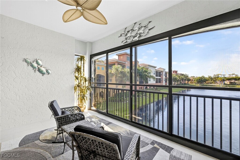Live the Florida lifestyle in this beautifully updated 3 bedroom,2 bath turnkey furnished 2nd floor coach home located in the gated community of Rapallo. Designed for comfort and convenience,this home is move-in ready and filled with thoughtful upgrades. The open floor plan is light and bright with a southern exposure overlooking a large lake. A spacious screened-in balcony with impact-resistant windows lets you enjoy the fresh breeze or the comfort of A/C year-round. Inside,you’ll find the completely redone kitchen with Quartzite counters,tile and wood floors throughout,large owners suite with two closets,updated bathrooms with tile showers,and a versatile third bedroom that can be set up as a guest room or home office. A 1-car garage with extra storage space completes the home. As a resident,you’ll also enjoy the one of a kind amenities,including multiple resort style swimming pools plus a screened in lap pool,a clubhouse with social activities,fitness center and sauna,tennis courts,bocce courts,scenic walking and biking paths. Rapallo’s central Estero location is ideal—right next to Coconut Point Mall for shopping,dining,and entertainment,with quick access to RSW airport,I-75,and beautiful Gulf beaches.