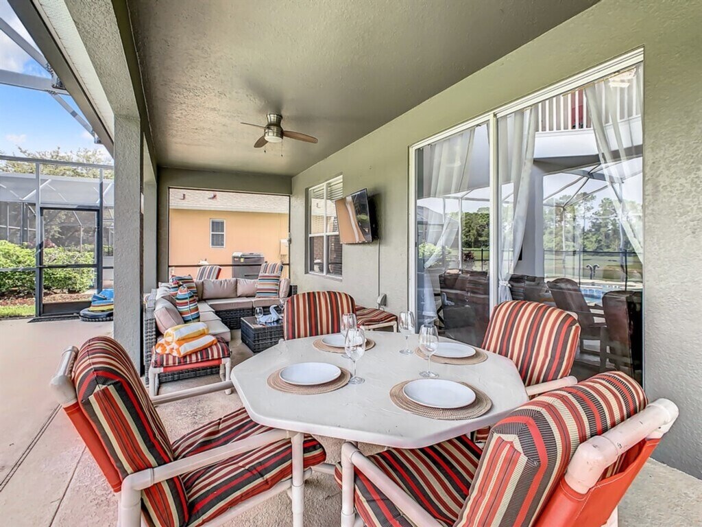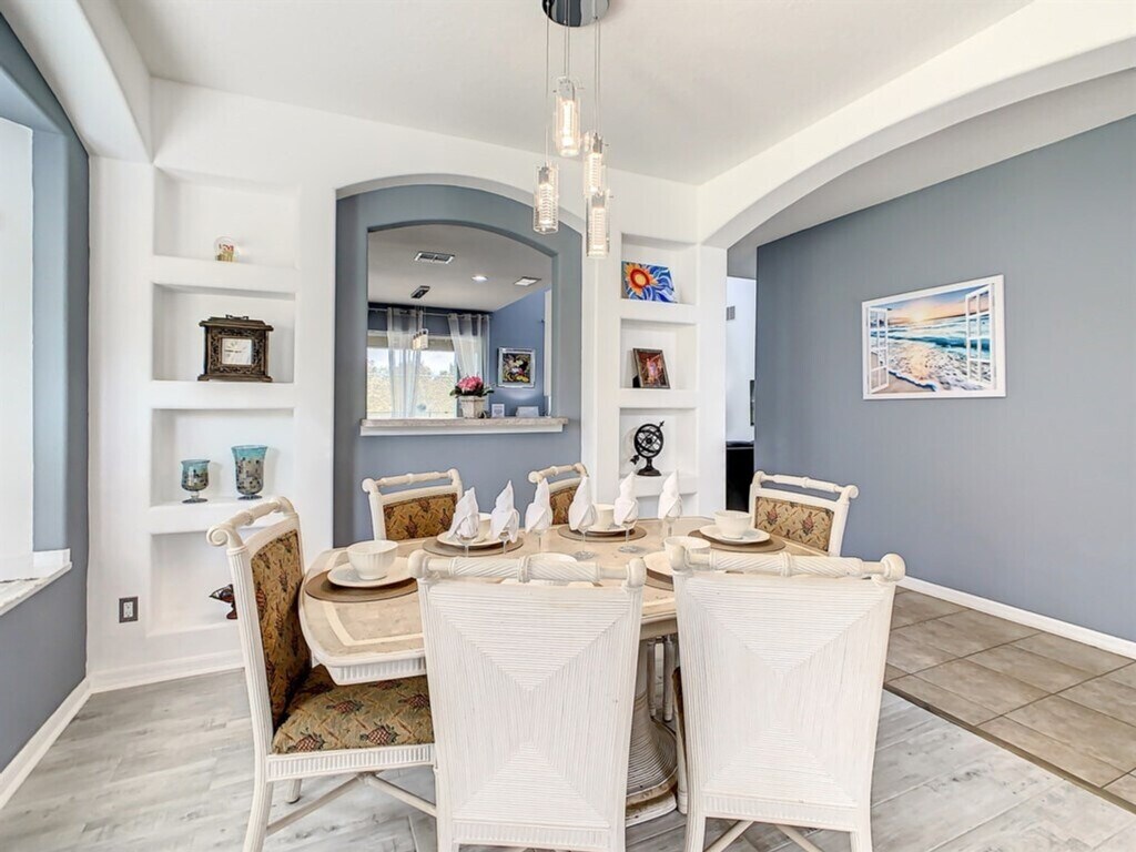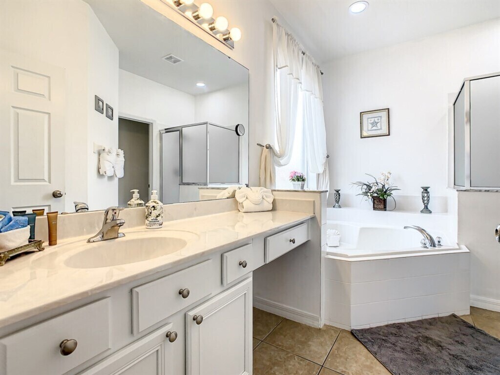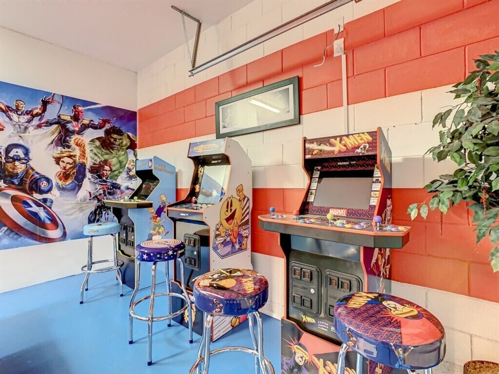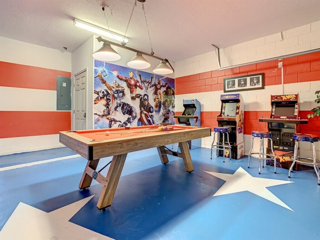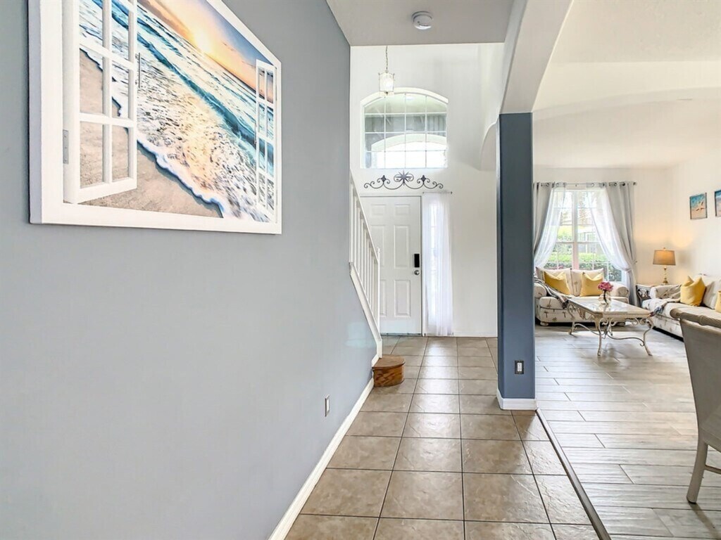 Experience the perfect getaway at this luxurious 7-bedroom villa in the Emerald Island Resort, Kissimmee. This spacious 2881 sq. ft. home comfortably accommodates 14 guests with 10 cozy beds, including 2 king-size beds, 2 queens, and 6 twins. Enjoy the large private pool and spa, outdoor TV and dining, a fun game room, and resort-style amenities like a clubhouse, Tiki bar, gym, and tennis courts. Located just 10 minutes from Disney, it’s your ideal vacation retreat for family and friends! Relax in the open-concept living room with plush seating, high ceilings, and plenty of natural light. The elegant decor and large TV make this the perfect spot to unwind after a day of exploring. The villa offers a variety of sleeping options for up to 14 guests, including a master suite with a king-size bed and ensuite bathroom downstairs, and additional bedrooms with king, queen, and twin beds upstairs. The fully equipped kitchen includes modern appliances, ample counter space, and everything you need to cook a meal for your group. Dine indoors at the elegant dining table or enjoy meals outdoors by the pool. Parking inside the resort requires a $20 non-refundable visitor access card per vehicle. Optional pool and spa heating is available for $35 per day plus tax and must be requested 7 days prior to arrival. The villa is just 10 minutes from Disney, making it a prime location for theme park enthusiasts. Across the street, visit Margaritaville and Sunset Walk for dining, shopping, a cinema, and a water park—perfect for a fun night out! The home features a Ring doorbell camera for security. Guests must be accompanied by a registered visitor to access resort amenities. Regular pest control and weekly pool and spa maintenance by licensed professionals ensure cleanliness and safety.