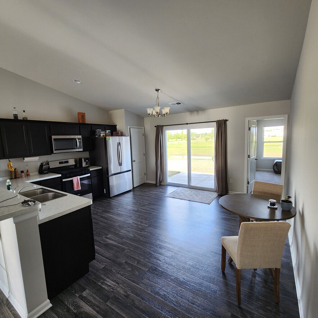 BUILT IN 2024!! RANCH DUPLEX, 3 BED/2 BATH. LOCATED SOUTH OF US30 RIGHT OFF 86TH AVE AND MADISON STREET IN BRAND NEW HUNTERS GLEN SUBDIVISION. AWESOME RENTAL AVAILABILE FOR RENT 12/01/2025. 12 OR 24 MONTH LEASE AVAILABLE. Some high quality furniture is available with the house if requested. This paired villa features 1574 sqft, 3 beds, 2 baths, 2-car Attached Garage with built in work bench. Open Concept Great Room/Kitchen. Includes Cathedral Ceilings in Great Room/Kitchen with Ceiling Fan, Raised Breakfast Bar, Maple Cabinetry w/Crown Moulding, Whirlpool Stainless Steel Dishwasher, Microwave, Washer and Dryer included, Laundry Tub in Finished Laundry Room, Garage Door Opener w/Keyless Entry, and 10x10 Concrete back Patio. No neighbors to the rear with an awesome pond view. Privacy fence between units. Premium Lot! Great location with easy access to all of US30 Merrillville/Hobart shopping and restaurants. Also, just minutes from downtown Crown Point. Showing available after application completed. Landlord provides landscaping service. Tenant is responsible for utilities. $2,600 monthly rent with $2,600 security deposit. No pets.
