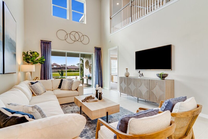 Property Id: 2160203 Hurricane-impact windows, outdoor kitchen hook-up, cul-de-sac location, and close proximity to the trail. 2025 newly built single-family photos from Model home offering modern design, comfort, and convenience. This spacious 4-bedroom, 3.5-bath residence features a dramatic two-story living room filled with natural light, an open-concept floor plan, and a gourmet kitchen with stainless-steel appliances, white cabinetry, and a breakfast bar — ideal for everyday living and entertaining. The first-floor primary suite includes a walk-in closet, dual vanities, and a luxurious walk-in shower. Additional highlights include hurricane-impact windows and doors, a dedicated office/den, tankless water heater, and a pre-installed outdoor kitchen hookup. Enjoy peaceful outdoor living in the quiet backyard, located closed to a cul-de-sac for extra privacy and safety. Just steps from Skye Ranch Trail, this home blends luxury, function, and an unbeatable location for the perfect Florida lifestyle.