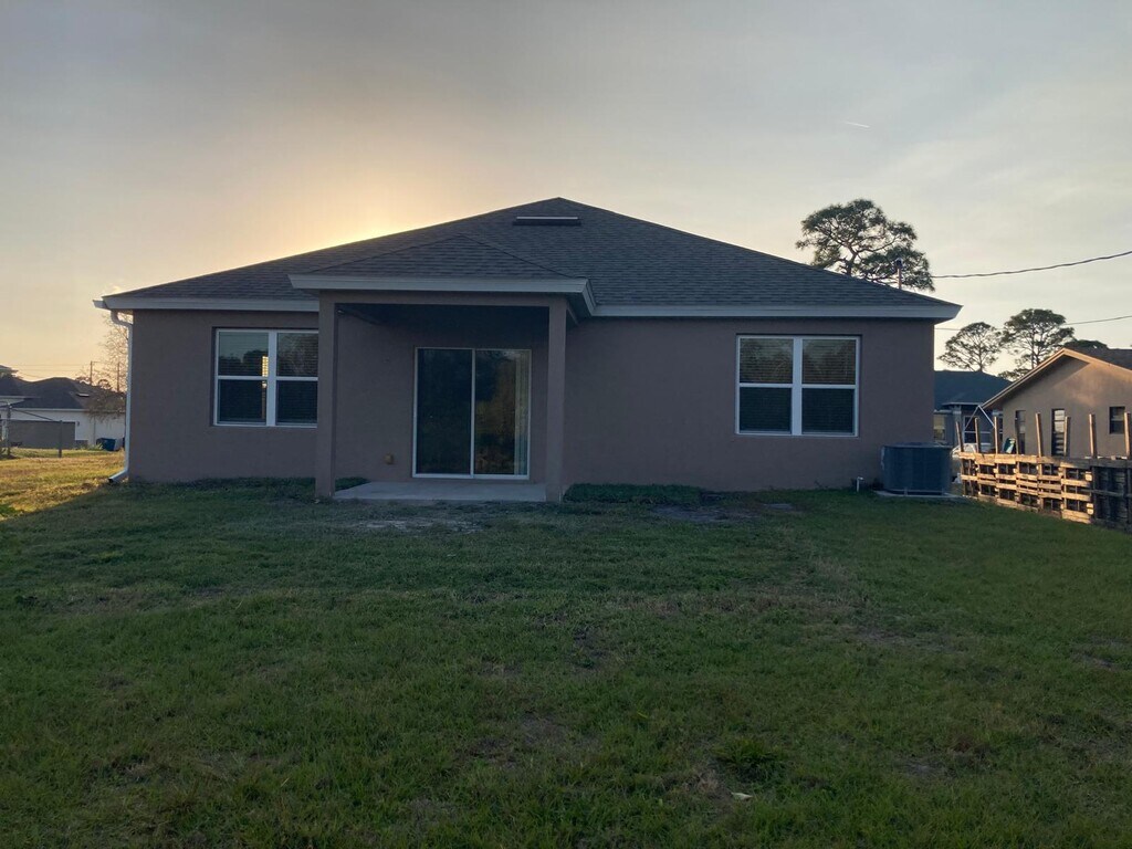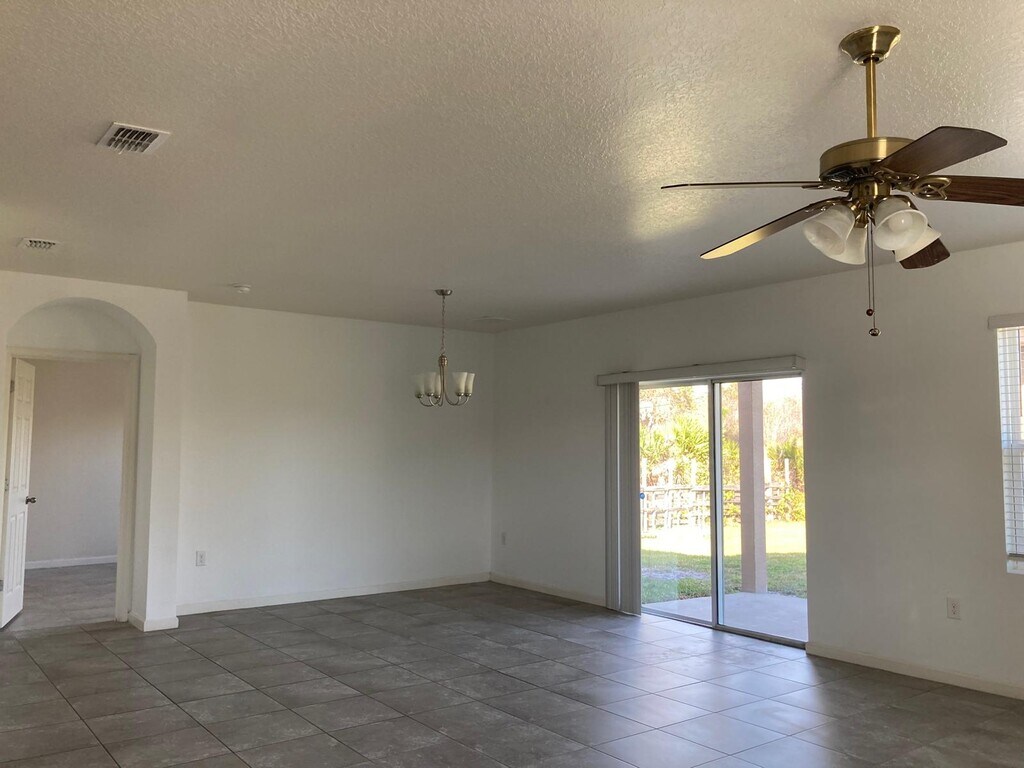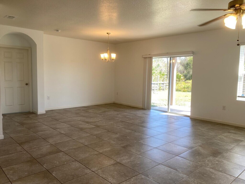 Spacious 4-bedroom, 2-bathroom single-family home Quiet, family-friendly neighborhood Large private backyard with no rear neighbors, backing up to natural vegetation Just steps from Liberty Park with basketball courts, baseball field, and scenic walking, biking, and jogging trails Bright open-concept living and dining area Tile flooring throughout the entire home Functional kitchen with ample cabinet and counter space Primary (master) bedroom with private en-suite bathroom Ceiling fans in the primary bedroom and family room Comfortable secondary bedrooms with closets 2-car garage City water service Quick access to I-95 Minutes from schools, supermarkets, shopping centers, and restaurants
