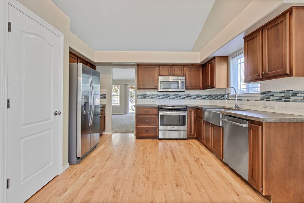Welcome to this spacious, light-filled 3 bedroom 2 bath in a peaceful Meridian neighborhood! With 1,426 sq ft of living space, this home offers thoughtfully designed living spaces that flow naturally between rooms, making it ideal for both entertaining and everyday living. Step inside to fresh interior updates, abundant natural light, and a spacious layout. The kitchen features stainless steel appliances - including a farmers sink, a large whirlpool refrigerator, an electric stovetop, and a dishwasher. There is a charming laundry room with the dryer and washer included. The 2-car attached garage features a corkboard to organize all your DIY projects! Outside, enjoy a partially covered back patio and a fully fenced yard, or take a stroll to the nearby parks. Don’t miss this chance to enjoy comfort, convenience, and charm - all in one home.