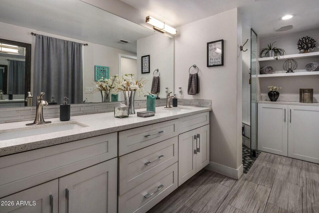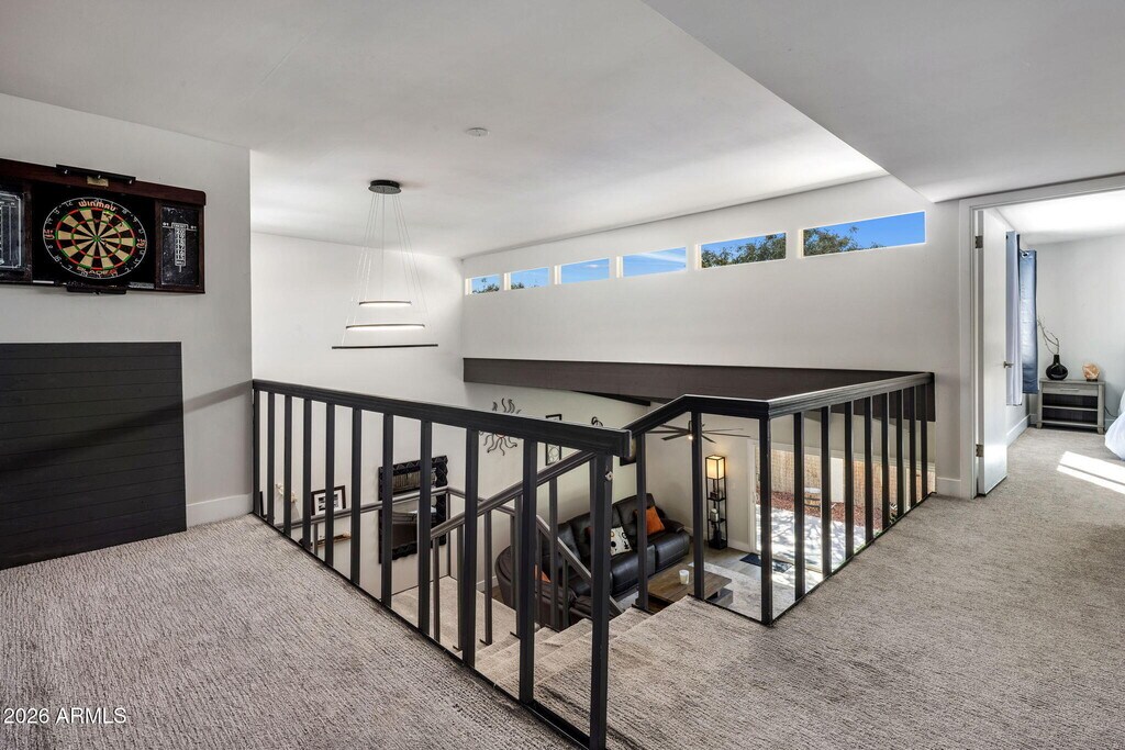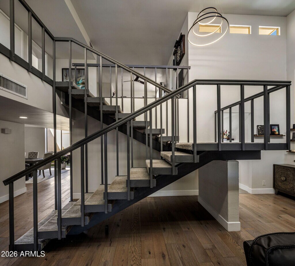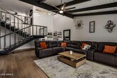 Architectural living meets effortless Scottsdale lifestyle in this rare fully furnished home designed by renowned architect E. T. Wright. This 3-bed,2.5-bath home offers 3,010 sq ft of bright,open living with vaulted ceilings,hardwood floors,concrete-look ceramic tile,recessed lighting,& modern fixtures. The living space features a large sectional and lift-top coffee table,while the kitchen includes shaker cabinetry,subway tile,wine fridge,& island seating. The primary suite offers a walk-in closet and a spa like shower and private access to the patio. Sip morning coffee from the upstairs porch with mountain views or unwind in the roomy backyard. 2-car garage,storage sheds,Nuvo H2O system,and community pool & spa. Minutes to Old Town Scottsdale dining,shops & entertainment.