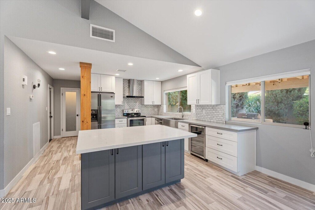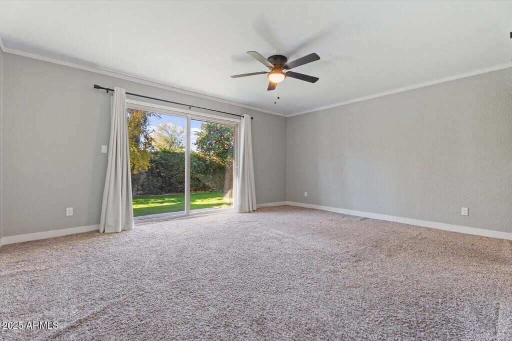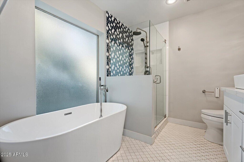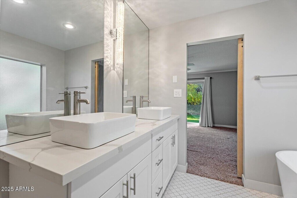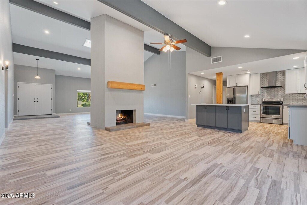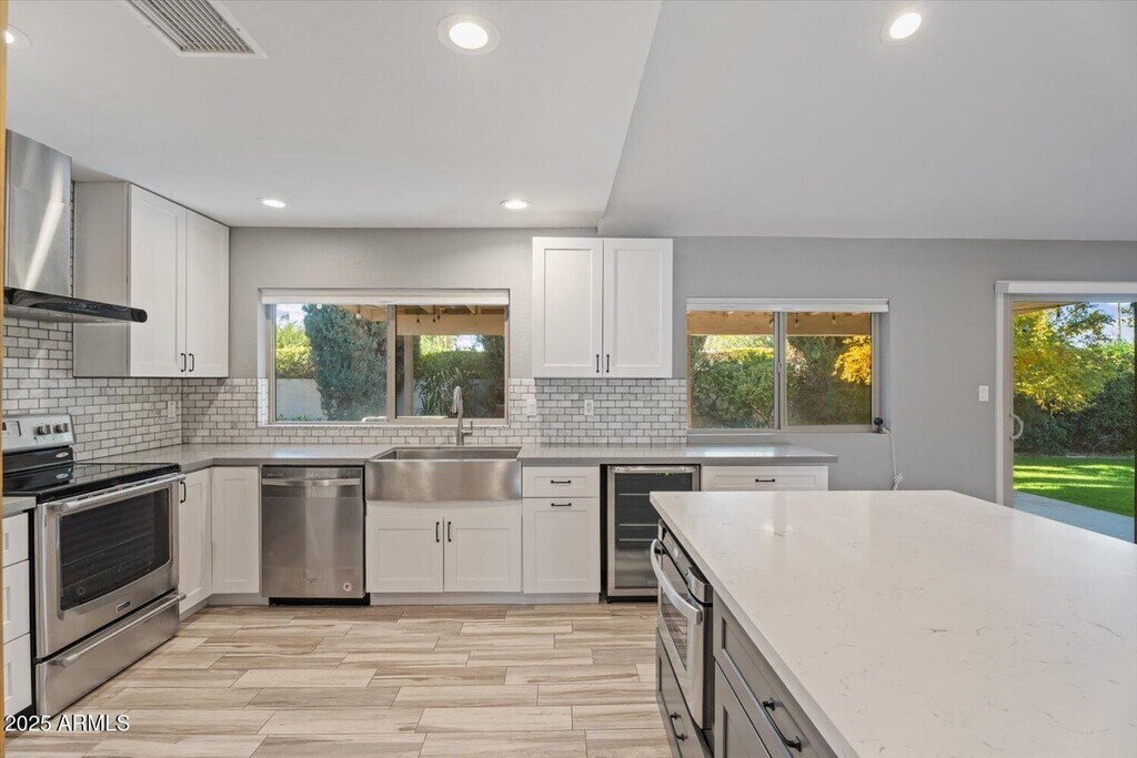 Prime corner lot in the heart of McCormick Ranch! This single-level home is 2,360sq ft.,offers 3 generous bedrooms,2.5 contemporary baths,and an effortless flow designed for seamless indoor-outdoor living. The vaulted ceilings and expansive living,family,and dining spaces converge around a two-way fireplace,perfect for cozy evenings or vibrant gatherings. The chef's kitchen offers shaker cabinetry,sleek quartz countertops,a spacious pantry,and stainless appliances. You'll love the primary suite,with a spa-inspired bath featuring a jetted tub,separate walk-in shower,dual vanities,and custom quartz finishes. Two additional bedrooms have plush carpet and ample closets. Your private backyard has a covered patio with a BBQ,cozy seating nooks,and mature trees ideal for al fresco dining or weekend lounging. Dual garage spaces and room for more in the driveway,complete the picture. You're moments from the TPC Scottsdale golf courses,McCormick Ranch lakes,and miles of biking paths in this well-maintained community. World-class shopping at Scottsdale Quarter and Fashion Square Mall and over a hundred dining options in old town are a quick drive away,with easy access to the 101 freeway for Phoenix adventures. Top-rated Scottsdale Unified District schools ensure excellence for families. Turnkey,modern,and move-in ready!