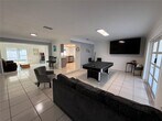 Completely turnkey & beautifully updated! Open-concept living with brand new kitchen (quartz counters, stainless appliances), huge island, pool table, arcade game, 75†TV, and sectional. Four bedrooms (two kings, one queen, one bunk room), three modern bathrooms, indoor laundry, 1-car garage, impact windows, brand-new roof. Private fenced backyard with screened lanai, artificial turf, putting green, and patio seating — perfect low-maintenance outdoor space. All furnishings included — furniture, TVs, decor, dishes. Just bring your clothes! Quiet street, great location, available now. This one won’t last!