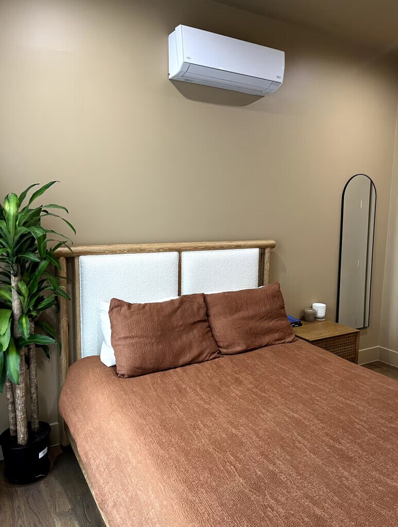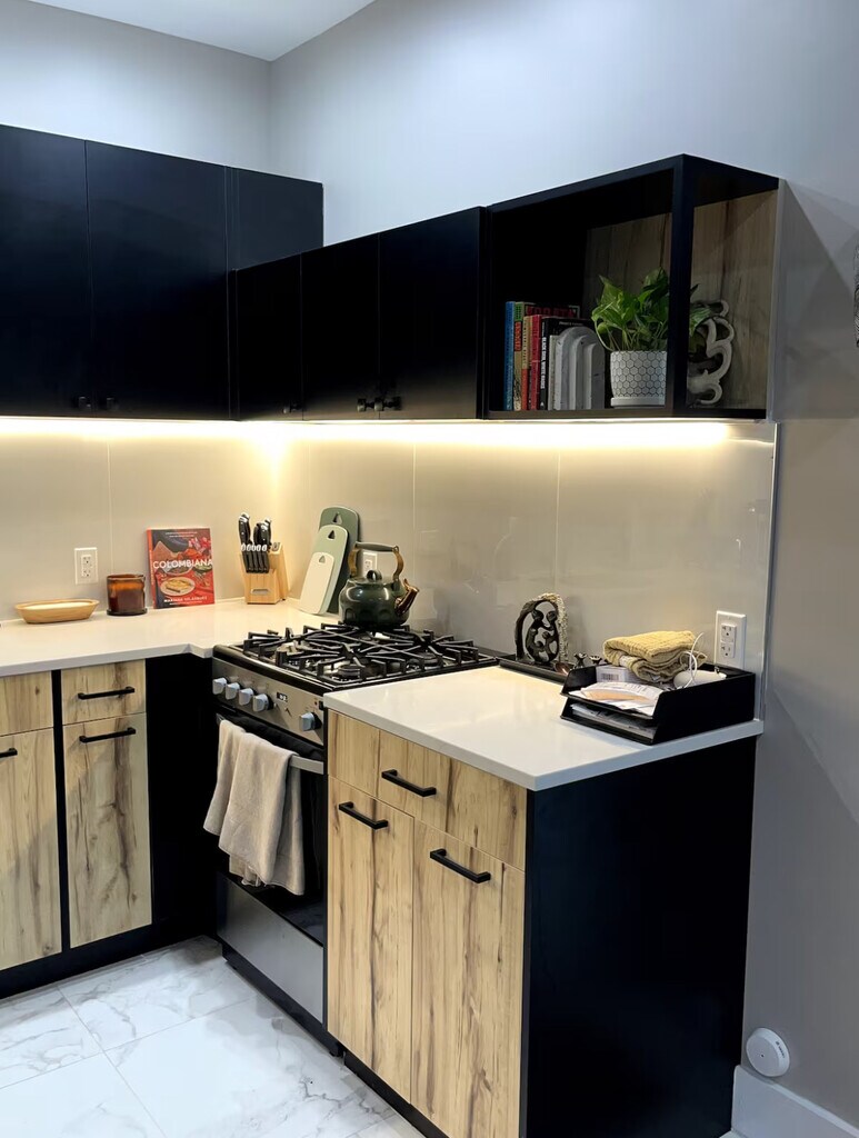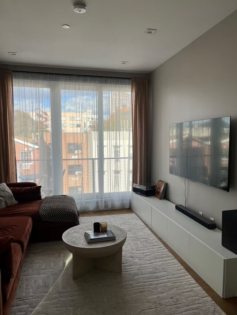 Stylish, light-filled 700 sq ft one-bedroom in a quiet new-construction building with rooftop seating. Designed for longer stays, it features earthy tones, elevated artwork, high-end furniture, real plants, soaring 10-ft ceilings, a full kitchen and marble bath, ample storage, and a dedicated workstation with standing desk. Enjoy a private balcony, entry vestibule for coats and shoes, and two 60”+ smart TVs — just a 5-minute walk to the J/Z train and about 15 minutes to Manhattan. This is a newly constructed (2023) boutique condo building with fewer than 10 units, offering a quiet, residential feel with modern finishes throughout. - 700 sq ft 1-bedroom in a quiet, boutique new-construction building (2023) - Fewer than 10 units — peaceful and private - Soaring 10-ft ceilings and abundant natural light - Private balcony + shared rooftop with seating - Dedicated workstation with standing desk (ideal for WFH) - Full kitchen with marble counters and standard-size appliances - Marble bathroom with ample storage - Large entry vestibule for coats, shoes, and luggage - Two 60”+ smart TVs (living room & bedroom) w/ Netflix, Paramount Plus, Hulu, Apple TV, and more streaming channels available - Queen-size bed with premium linens The unit is on the third floor and includes a private balcony with seating for outdoor dining or relaxing. Guests have full private access to the entire condo unit, including the living room, kitchen, bedroom, bathroom, and private balcony. Guests may also use the shared rooftop seating area in the building. This is a quiet, residential building designed for longer-term stays. It’s ideal for professionals, remote workers, creatives, and anyone relocating to New York. The apartment is on the third floor of a walk-up building (no elevator). - Fully stocked kitchen with spices, cooking oil, and cookware - Rice cooker, air fryer, George Foreman grill, and NutriBullet blender - Eight dressers plus a large bedroom closet for extended stays - In-unit washer and dryer - Cleaning supplies provided - Optional alarm system available for guest use Neighborhood Highlights: You’re in one of Brooklyn’s most vibrant and livable areas, right where Bed-Stuy meets Bushwick. The neighborhood blends beautiful tree-lined blocks with some of the best cafés, bars, and restaurants in Brooklyn, all just a few minutes on foot. Walk 5–10 minutes to Malcolm X Blvd for coffee shops, wine bars, brunch spots, and neighborhood favorites. Broadway is only two minutes away for quick bites, groceries, and everyday essentials. Bushwick’s art, nightlife, and food scene is also a short walk, giving you endless options without needing to hop on the subway. The J/Z train at Gates Ave (5-minute walk) puts you in Lower Manhattan in about 15 minutes and Midtown in around 30, making this a perfect home base if you’re working, exploring, or commuting into the city. It’s a neighborhood that feels local, creative, and alive, but still relaxed and residential, so you get the best of Brooklyn without the noise or crowds.