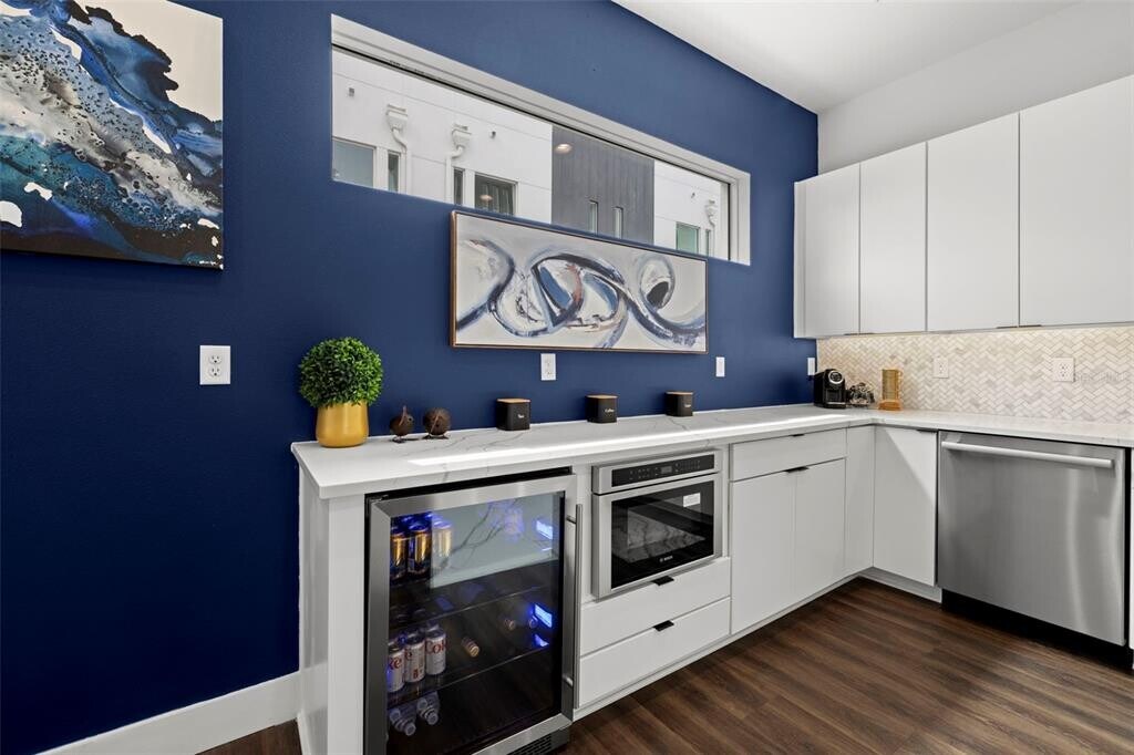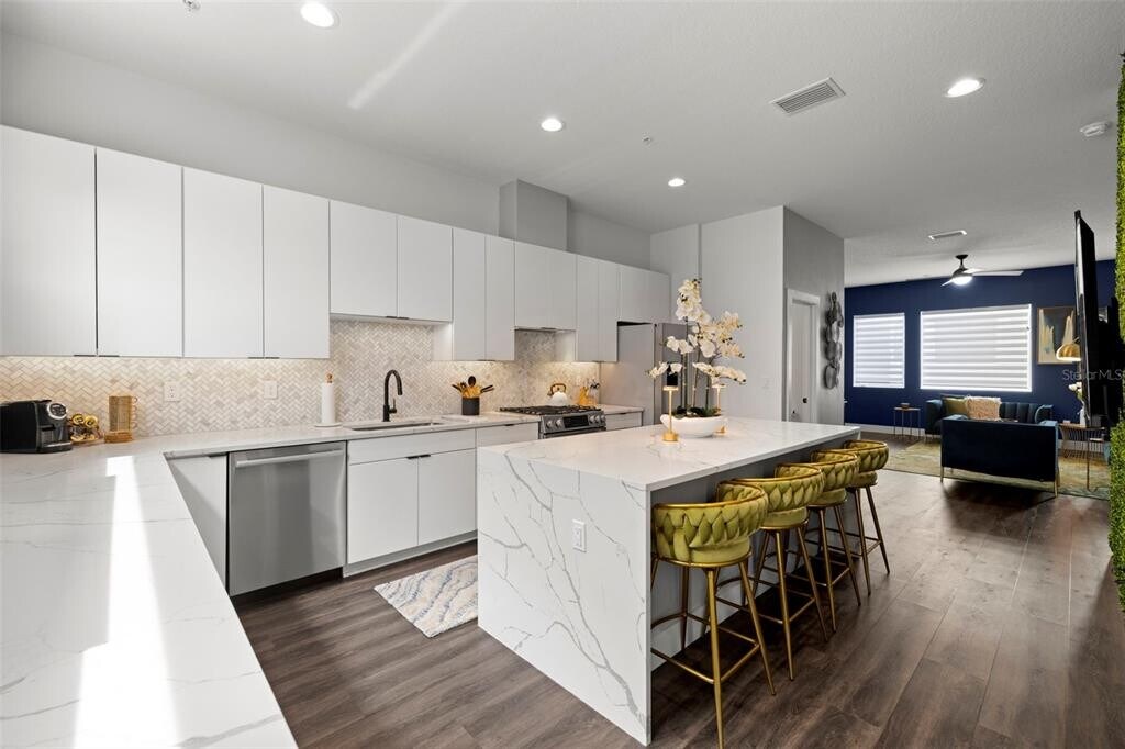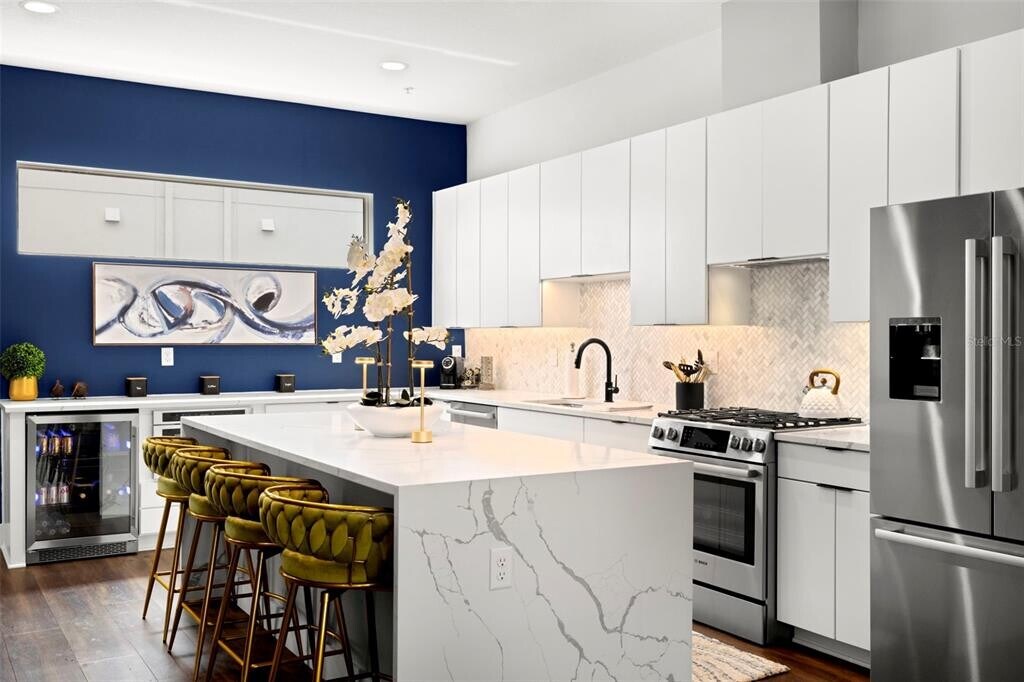 Live the vibrant urban lifestyle in this stylish and spacious 2-bedroom,2.5-bathroom townhouse. Located in the heart of Downtown St. Petersburg,this residence offers the ultimate in convenience,comfort,and modern design. This ALL-BLOCK luxury-residence is situated in a NON-FLOOD,NON-EVAC ZONE,with Hurricane IMPACT windows for ultimate peace of mind. The lush landscaping is what you will see upon walking to the front entry way The first level features a versatile second bedroom with an en-suite bath with direct access to an oversized one-car-EV-ready garage complete with new epoxy flooring. The spacious chef’s kitchen boasts quartz countertops with an oversized island with a WATERFALL countertop,a breakfast bar for four,and sleek,flat surface,European,soft close cabinetry with a striking marble herringbone tile backsplash. The appliances are ALL brand-new Bosch appliances,including a FIVE burned GAS oven,convection microwave,dishwasher,refrigerator AND wine refrigerator will complete this stylish and functioning space that is perfect for entertaining. The living space shares the floor with the gourmet kitchen and is large,comfortable with lots of natural light. Retreat to the primary suite upstairs for ultimate relaxation where you'll find a brand-new,custom,walk-in closet with built-ins and stylish décor. A beautifully tiled ensuite bath with double sinks,custom LED mirrors,wood shelving and an extra-large walk-in shower. The washer and dryer room is conveniently located near the master bedroom. Also on the floor is a versatile loft space—perfect for a home office,creative studio,or workout zone. The entire townhome has custom roller-shade blinds that allow privacy and natural light. The crown jewel of this residence is the private rooftop terrace. Imagine unwinding under the new sunshade,grilling with friends on the brand new,built-in 36-inch gas grill with stone countertops. Imagine mixing cocktails in the rooftop wet bar,watching the city views which often feature firework displays— all with the city skyline as your backdrop. This space isn’t just an amenity; it’s your urban oasis in the sky. This exclusive 26-unit boutique community offers modern living just steps from everything downtown has to give. Imagine strolling to the St. Pete Pier,where 26 acres of breathtaking waterfront seamlessly blend with lush parks—creating the ultimate destination for biking,dining,shopping,concerts,and more. And the best part? You can walk to it all! From the moment you step inside,you'll feel the pride of ownership in every detail. SELLER IS LOOKING TO INCLUDE ALL FURNISHINGS - ALL WALL DECOR IN THE SALE OF THIS PROPERTY. MLS# O6348250