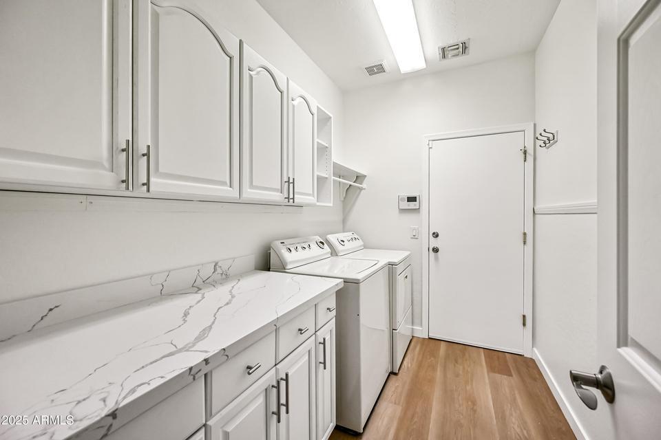 Beautifully upgraded 4 bed 2 bath home in the desirable Gilbert community Raven Ranch! This home has it ALL! A recent complete makeover & ready for you! Offers separate living/ family/dining rooms. A fantastic gourmet kitchen w/SS appliances,breakfast bar,pantry and plenty of cabinets for maximum storage! Truly a Home Chef's Dream! A lovely master bedroom w/ ensuite & large walk-in closet! 3 other generous size bedrooms & full bath. Beautiful upgraded lighting,fresh paint & new flooring throughout! Laundry room w/ washer and dryer & a clean 3 car garage! The backyard is an oasis w/ a new pool & deck in addition to new landscaping w/ easy care turf! No neighbors behind,backs to a greenbelt! Don't miss out! Pool service INCLUDED! Make this one yours!