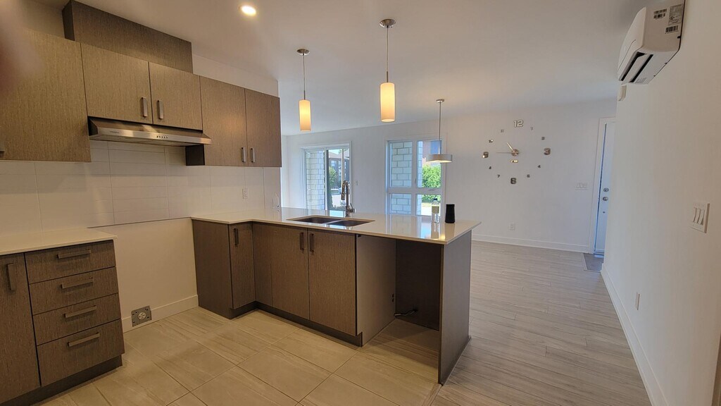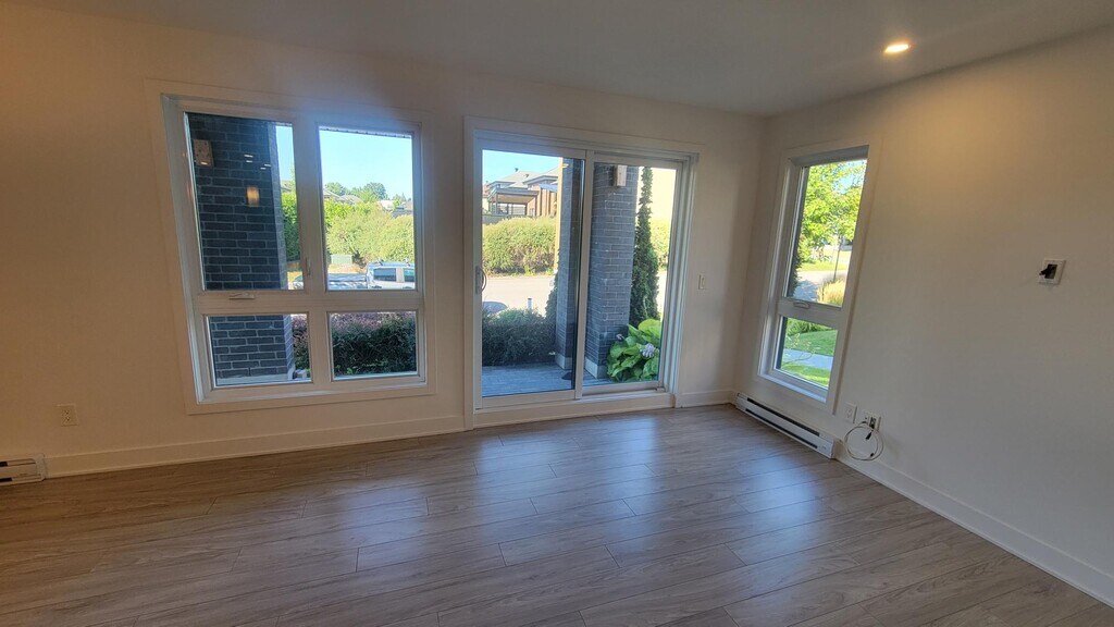 Urbanova, Terrebonne, Lanaudière. Condo 4 ½, haut de gamme de style contemporain. 876 Rue Anne Hébert J6Y 0M6. 1700 $/mois Disponible immédiatement. Cette unité de 951 pieds carrés approximative, située au 1e étage, avec balcon. Construction 2018 Description du condo : • Comptoir et îlot en quartz avec évier double encastré acier inoxydable • Hotte de cuisine acier inoxydable • Dosseret de céramique • Garde-manger • SDB avec plancher chauffant, bain séparé. • Salle de lavage ou Espace laveuse, sécheuse camouflée • Système de climatisation murale et échangeur d'air • 2 chambres avec placard • Foyer électrique au salon • Planchers en bois d'ingénierie • Éclairage au plafond fourni. • Porte patio et balcon. • Grand et lumineux, fenestration abondante • Plafond de 8 pieds Inclusions : • Un stationnement intérieur (garage commun) • Un espace de rangement intérieur (garage commun) • Eau chaude • Possibilité 2e stationnement intérieur, (sur disponibilité 120,00$ / mois) ou extérieur (sur disponibilité 75,00$ / mois) • Entretien paysager et déneigement • Service professionnel de gestion immobilière Secteur : • À quelques minutes de côte de Terrebonne • Tranquille et boisé avec parc et piste cyclable à proximité. • À quelques minutes de l'école de l'espace-Couleurs • À proximité d'épiceries, pharmacies, magasin, centre d'achat, milieu naturel, terrains de golf, restaurants, etc. Exclusions : • Électricité, câble, Internet, chauffage, assurance, meubles & électroménagers Conditions de location : • Enquête de prélocation obligatoire (enquête de crédit, vérification auprès du TAL, confirmation d'emploi, références locatives) • Immeuble, garage et terrasse non-fumeurs (cigarette, cannabis, vapoteuse et autre interdit) • Assurance habitation obligatoire avec responsabilité civile • Paiement de loyer par prélèvement bancaire obligatoire • Le premier mois est payable à la signature du bail • Signature des règlements de l'immeuble obligatoire • Animaux refusés, poisson et reptiles. • Location minimum de 12 mois. Une preuve d'assurance obligatoire avec responsabilité civile pour l'unité louée.