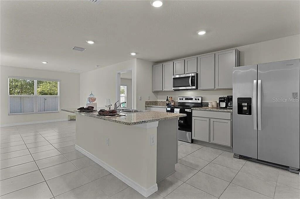 Experience only good vibes in this stylish 3-bedroom,2-bath ARIA model home in the quiet Triumph South subdivision of Wildwood. This 1,664 sq ft home features an open layout with ceramic tile in main living areas,carpeted bedrooms,and a split-bedroom floorplan for added privacy. The kitchen offers granite countertops,a large island,stainless steel appliances,gray cabinetry,and a walk-in pantry. The primary suite includes a huge walk-in closet and ensuite bath with dual sinks,rain showerhead,and private water closet. Additional features include: - 2-car garage - Inside laundry with washer & dryer - Covered lanai —no rear neighbors - Brand-new park coming soon with playground & bocce court. Conveniently located near shopping,dining,and The Villages Town Squares with free nightly live music. Tenant is responsible for landscaping and must place all utilities in their names. Tenant is also responsible for the monthly HOA fee. Renters must consent to credit and background check. Absolutely NO SMOKING MLS# OM705310
