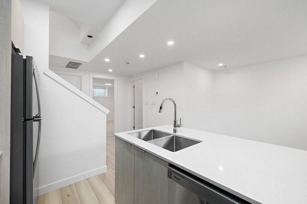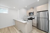 Contemporary lower level suites! This lower level 1 bed, 1 bath home offers: – modern, open concept layout in living, dining, and kitchen areas – spacious 9' ceilings – high efficiency, triple pane windows complete with window coverings – LED lighting package throughout – stainless steel appliances with gas stove – quartz countertops in both kitchen and bath – custom cabinetry and soft close drawers in both kitchen and bath – good sized bedroom with carpet – separate high efficiency in suite laundry – independent temperature control – independent furnace and HRV “Fresh Air” system – separate entrance for unit – ample street parking – small pets under 15 lbs will be considered with fee of $50 per pet per month. Max 2 pets. Utilities an additional $150 for single occupancy $195 for double occupancy