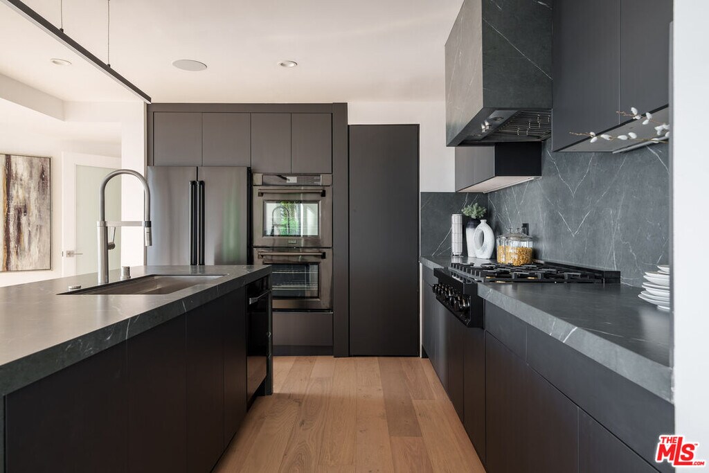 *Available long or short term, prices vary based on duration & availability.* This home is a spacious three-story view estate, perfectly located on upper Hollywood Blvd, above the famed sunset strip - offering jetliner city, and ocean views. Within minutes of Laurel Canyon, Beverly Hills and Sunset Blvd, prime location makes it easy to get around. The property includes direct-entry garage. Each room offers gracious natural light, and unobstructed views. An open layout gourmet chefs kitchen accompanied by stainless steel sleek black appliances, and center kitchen island overlooking the city makes for an ultimate cooking experience. Ceiling to floor sliding doors provide an indoor/outdoor experience as outdoor terraces are present on each level. Primary suite features a fireplace, private balcony, and a luxury style master bathroom. The Master bathroom is truly unmatched with its high end finishes, as it invites you in to relax after a long day, in a king-sized soaking tub, or showers. As you make your way down to the backyard, a panoramic view of the city takes your breath away. Enjoy the skylight sunset, with a built in fireplace & BBQ, perfect for hosting dinner parties or a romantic night in the jacuzzi. Smart-Home features include fully equipped lighting systems, Nest, Sonos, Multi-Zoned & control 4 applications. Welcome Home. MLS# 26650741
