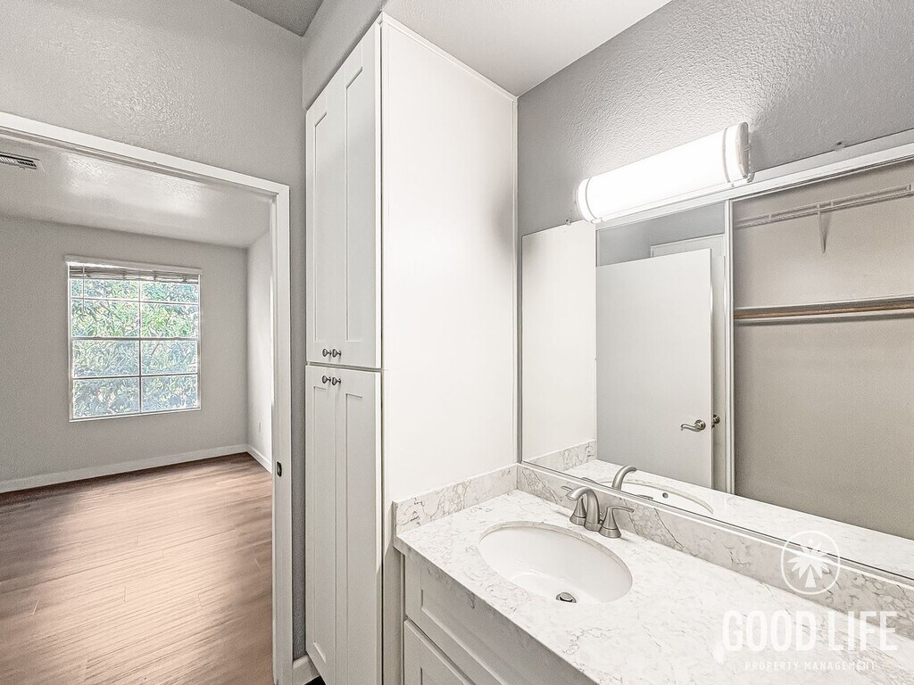 AVAILABLE NOW! For complete lease terms and how to apply, please go to our website. 3D TOUR: Welcome to your new home in Mira Mesa. This single-level, second-story condo offers all the amenities you need for comfortable living. Step inside to a spacious, open-concept living and dining area, featuring a sliding glass door that leads to a private balcony. The kitchen is a culinary haven with updated appliances and a sleek, modern design. Each bedroom includes its own en-suite bathroom, providing maximum convenience and privacy. The community offers two private parking spaces in the secure garage, a community pool, and the home includes central air conditioning and heating. Conveniently located in the heart of Mira Mesa, this condo provides easy access to major employers in Sorrento Valley and UTC, the I-15 freeway, and a wide variety of dining and shopping options. FREQUENTLY ASKED QUESTIONS - WASHER/DRYER: Included - AIR CONDITIONING: Included - PARKING: 2 reserved spaces in community garage - UTILITIES INCLUDED: Water, Sewer, Trash, Landscaping in common areas - GARDENER INCLUDED: No - PET RESTRICTIONS: Pets not allowed APPLICATION, LEASE TERMS, AND FEES - APPLICATION FEE: Non-Refundable $55/adult (all occupants 18+ need to submit an application) - APPLICATION TURNAROUND TIME: 2-3 business days - LEASE LENGTH: 1 year - SPECIAL LEASE PROVISIONS: - Additional Terms: No plants allowed at the patio more than 3ft tall - NON-WARRANTIED: The following items or personal property are included in the Premises without warranty and Landlord will not maintain, repair or replace them: Door Bell, Fireplace - RENTER'S INSURANCE: Tenant must carry renter's insurance w/ minimum $100K liability SUMMARY RENTAL CRITERIA -We look for favorable credit history, good references, sufficient income, and the ability to move-in within 14 days of applying -If approved, we require one full month's rent, plus security deposit to move-in -Please read the full rental criteria when submitting an application. Cole Snyder DRE #02193115 Good Life Property Management, Inc. CalDRE #01929564 Price, terms, offerings, availability subject to change. All information deemed reliable, tenant to verify all. *Good Life Property Management, Inc. adheres to all Fair Housing Laws*