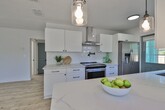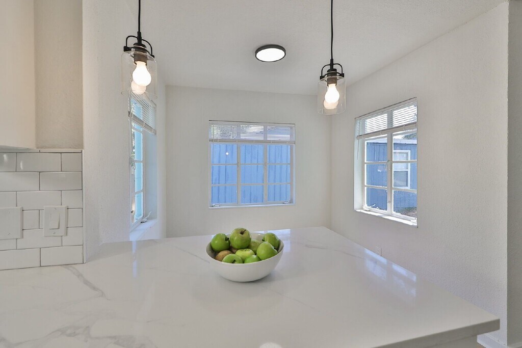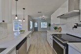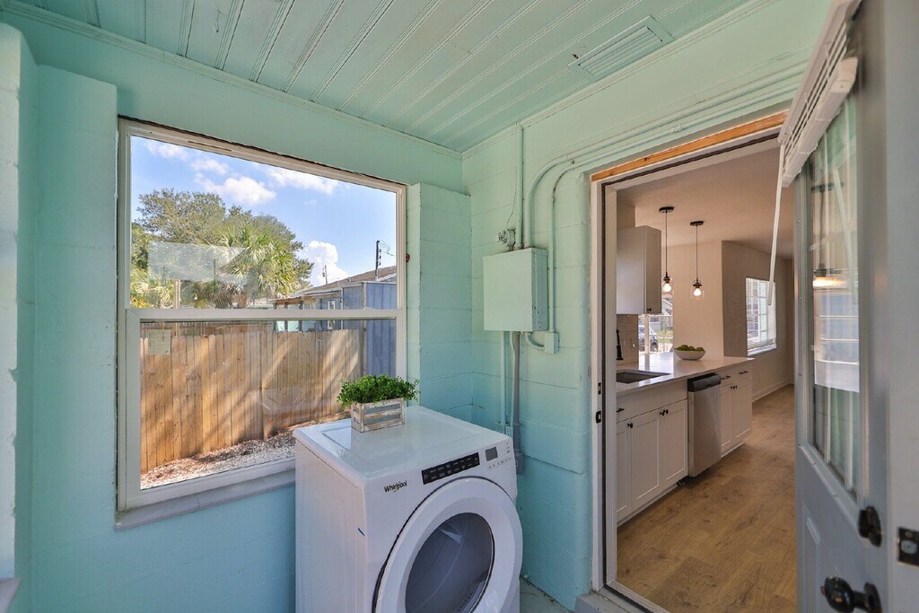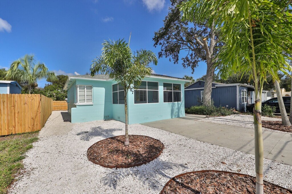 COASTAL BUNGALOW in magical St. Pete! Check out this 2 bedroom, 1 bathroom HOUSE that is beautifully updated and move in ready! From the private driveway and mature tropical landscaping, enter through a spacious enclosed front porch into a modern, bright and open space. Fresh paint, new fixtures and luxury wood look laminate flooring lead you through the living room into a contemporary kitchen featuring stainless steel appliances, dazzling quartz countertops, fresh white subway tiling, and a convenient breakfast bar overlooking a separate dining room with windows all around. Two bedrooms crown this home, one in the front of the property with patio access, and the second overlooking the huge back yard. Outdoors, enjoy an expansive xeriscape yard for the best of outdoor living and Florida life. For your convenience, private laundry is available on the enclosed back porch! Rent $2,295 includes landscaping and interior pest control; Tenant is responsible for water/sewer/trash and electricity. First months rent and security ($2,295) with approved application for move in. Available 4/24/26. Application fee $65; application required for any occupant 18 years or older; 1 pet allowed with $500 pet deposit and $50/month pet fee. By submitting your information on this page you consent to being contacted by the Property Manager and RentEngine via SMS, phone, or email.