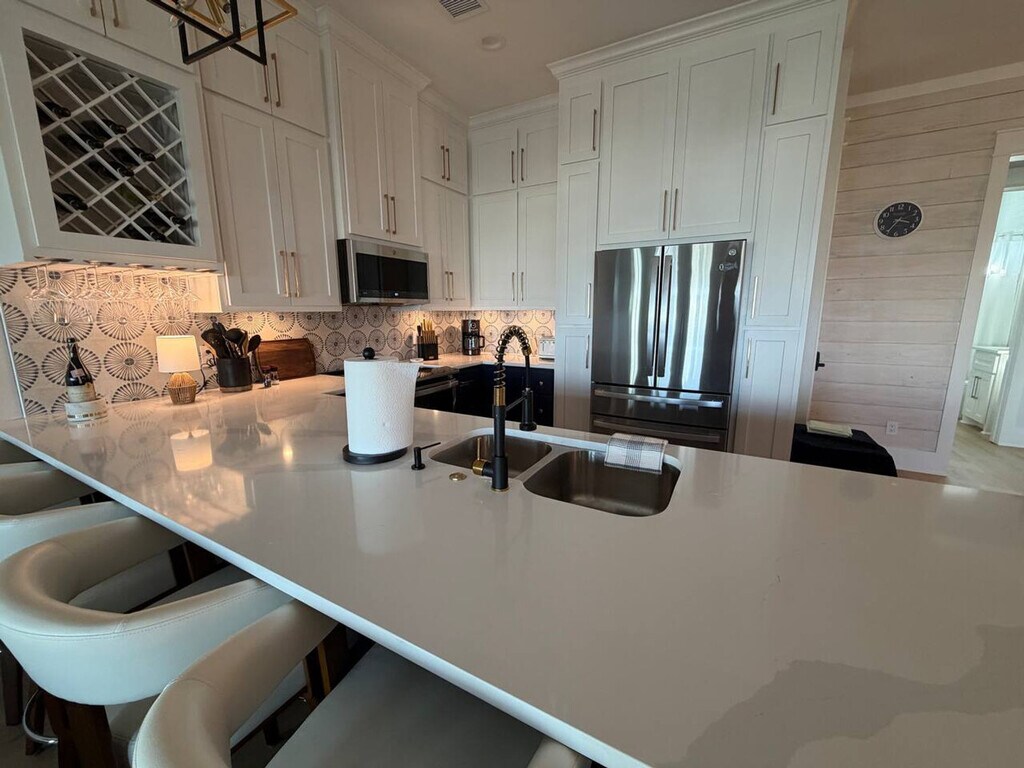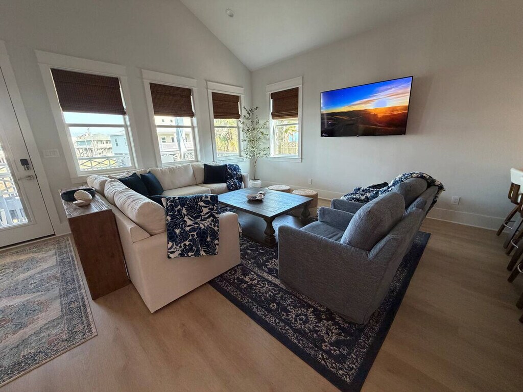 The advertised rate of $7,683/month is the lowest available price, based on a 1 month(s) stay with a move-in date of April 8, 2026. Rates vary depending on the duration of stay, season, and other parameters. For exact pricing and additional pricing components, please visit our website and enter your desired move-in and move-out dates. The rate is applicable when billed upfront; it can be higher if billed in multiple payments. Feel at home in LaPerla, a spacious home designed for twelve, and a short walk to the beach. This home features four bedrooms and three full baths, including two en-suite with walk-in showers and one hall bath with a deep tub. An elevator, with a 500-pound limit, runs between floors. This home offers clean lines and open space, with a long table for supper and a game of cornhole in the shade. Upstairs, the deck holds wide views, strong chairs, and a gas fire pit. You will have access to all four bedrooms, the three baths, the kitchen, the decks, the patio, the rooms in between, the garage, and the laundry room. An elevator and a golf cart are available for a fee. This is a laid-back stretch of the Texas coast where the road runs flat and the Gulf stays close. Homes sit on stilts, the breeze moves steady, and the beach is wide and open. Local seafood spots, small markets, and beach supply stores are a short drive away. It’s simple, easy, and built for slow days by the water. If you’re coming from Galveston, the ferry to Port Bolivar is free and runs daily and is a scenic, easy way in. Most people bring a vehicle, and you can drive directly onto much of the beach with a permit, which makes hauling chairs, coolers, and kids easy. The maximum occupancy is 12 people, and only registered guests are allowed at the house. Do not park under the house, and park only on the concrete driveway, being careful not to hit the pilings with your vehicle. Grilling on the deck is prohibited and against Galveston County ordinance; please grill downstairs on the patio area only and clean the grill after use. If you go to the beach, please rinse sand off in the shower under the house or on any of the available water hoses, and leave your sandy shoes on the deck by the front door. Do not flush feminine hygiene products or pour grease down the drains. If guests are asked to leave due to irresponsible and bad behavior, no refund will be given for lost days. The beaches at Crystal Beach have no lifeguards on duty, and swimming is at visitor’s own risk. Please do not move any furniture, indoor or outdoor, during your stay, and keep noise to a minimum during nighttime hours. [SI]