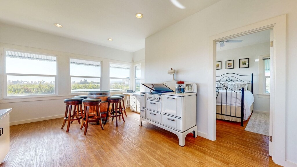 Please use the following link for a 3D tour! This charming 2 bedroom home comes with beautiful wood and sheet flooring throughout. It has a Living room, Dining room, large kitchen with an area for a breakfast nook, two bedrooms with a full jack and jill bathroom and one office room that also has its own entrance through the front. Kitchen includes a Gas Stove, Refrigerator and a Stainless Steel Dishwasher. Central heating. Half bath off dining room for guests.The kitchen also has its own entry/exit through one of the properties side yards. There is a very large basement the size of about 70% of the upstairs and adjacent to it you will find the laundry area. Two car garage. Plenty of additional parking in the driveway. Beautifully landscaped front and side yards as well as a beautiful Veranda with views of the vineyards, perfect for entertaining guests on those warm spring and summer nights! Landscaping included. 12 month lease. Sorry, no pets. Emotional support and Service animals welcome! (ST) *There are three car garages on the property but the owner is reserving one for storage **Furniture in the picture is not included ***Window A.C. unit in pictures and 3d tour is not included ****Square footage disclosed does not include basement area