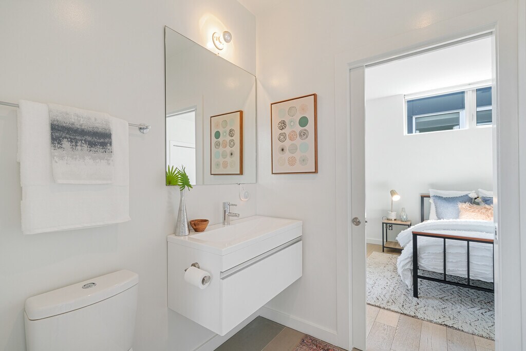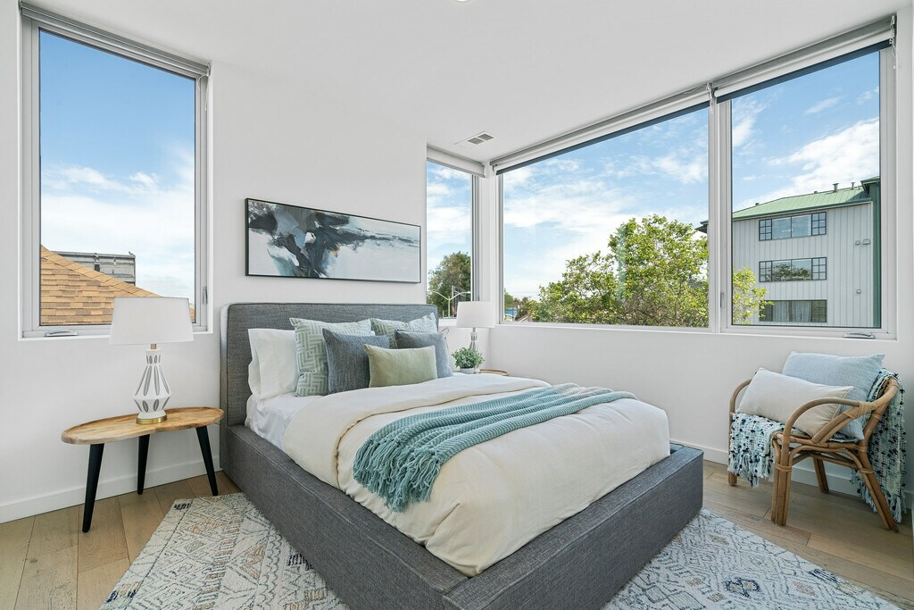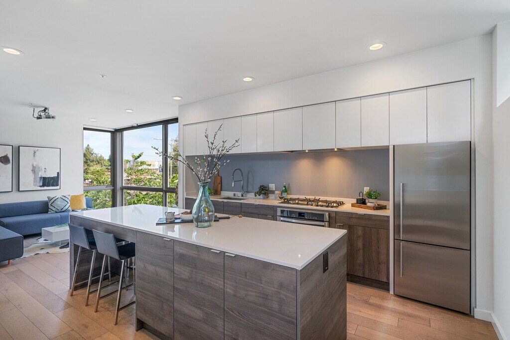 Serenity in West Oakland with this sleek and modern home pulled directly from the pages of Dwell magazine. Huge double pained window provide a flood of quiet light from all sides of this free-standing home. The home offers clean lines & a practical floorpan over 3 levels. Level 1 offers a large flex space bedroom, huge closet & full bath. Level 2 has open kitchen/living/dining with projector & auto screen. Level 3 is 2 bedrooms & a full bath. Finishes include polished concrete, wide plank hdwd flrs, 11' ceilings, terrace, modern baths & tons of storage. Secure parking & electrical for your car charger complete the home. West Michelin rated Soba Ichi is across the street, Starline Social Club 3 blocks away, ride your bike to BART or take the posh express bus. SF is 12 minutes away. So much to do when you live at 867 West Grand.