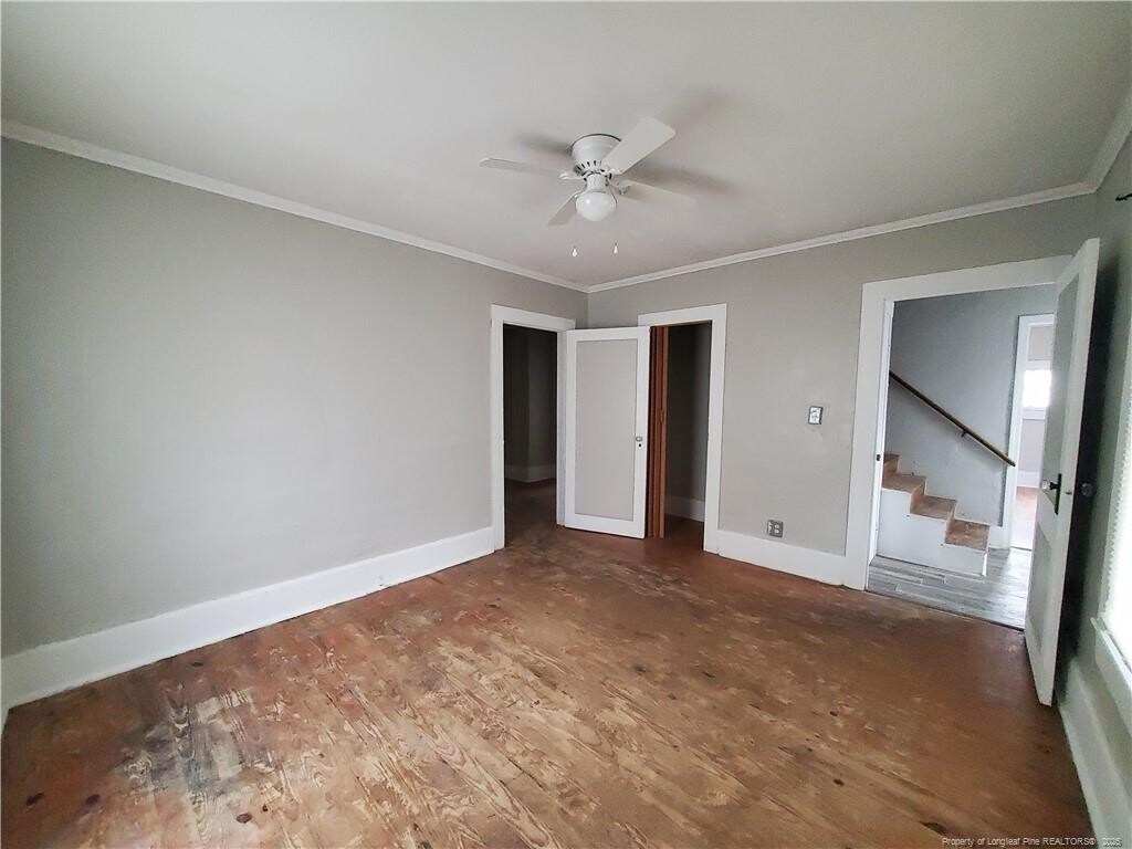 Welcome to 868 W Orange ~ Pleasant View, a charming 2-bedroom, 1-bathroom home located in the vibrant city of Fayetteville, NC. This delightful property boasts a range of amenities designed to enhance your living experience. Step inside to discover beautiful laminate and hardwood flooring throughout, creating a warm and inviting atmosphere. The home features a practical layout with a dedicated laundry room complete with W/D hookups for your convenience. The kitchen is equipped with a range and refrigerator, and also includes a cozy breakfast nook, perfect for enjoying your morning coffee. The home is kept comfortable year-round with a heat pump for heating and central A/C. Outside, you'll find a covered front porch and a deck, ideal for outdoor relaxation or entertaining. The property is finished with durable vinyl flooring, ensuring easy maintenance. Experience the comfort and convenience of 868 W Orange ~ Pleasant View, your new home awaits. ***Three finished rooms upstairs are NOT heated or cooled but tenants are more than welcome to install window ac/heat units to make them more usable.**
