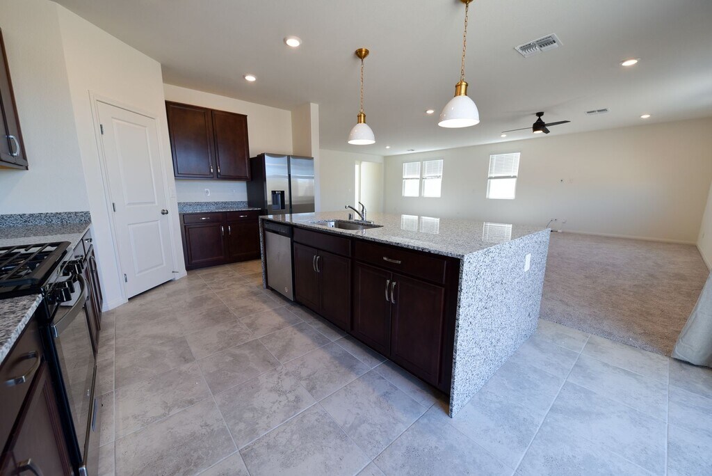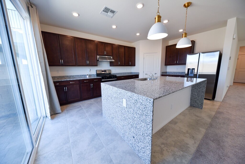 5-bedroom house in GATED community. This house has two master bedrooms. One junior suite master is on the first floor, and the other master suite is located on the second floor. Spacious loft at the top of the stairs. Fully upgraded island kitchen with waterfall quartz counters, stainless steel appliances, & a walk-in pantry. All appliances included. The washer and dryer are located in a dedicated laundry room upstairs. Low-maintenance desert landscape with paved driveway, walkway, and back patio. ***Application Requirements*** -Proof of income - Approximately 3 x the rent. -Rental History will be checked going back 3 years. -Credit Check will be completed. Evictions are automatic denial. - Pets will be considered on a case by case basis ***Move In Cost*** -$2901 Monthly Rent ($1850 Rent, $21 trash, $30 sewer) -$3000 Refundable Security Deposit -$400 Refundable Cleaning Deposit -$100 Refundable Key Deposit -$500 Pet Deposit -$25 Monthly Pet Rent -$85 Non Refundable Application fee per adult. All adults must apply. - 1 Year Lease.