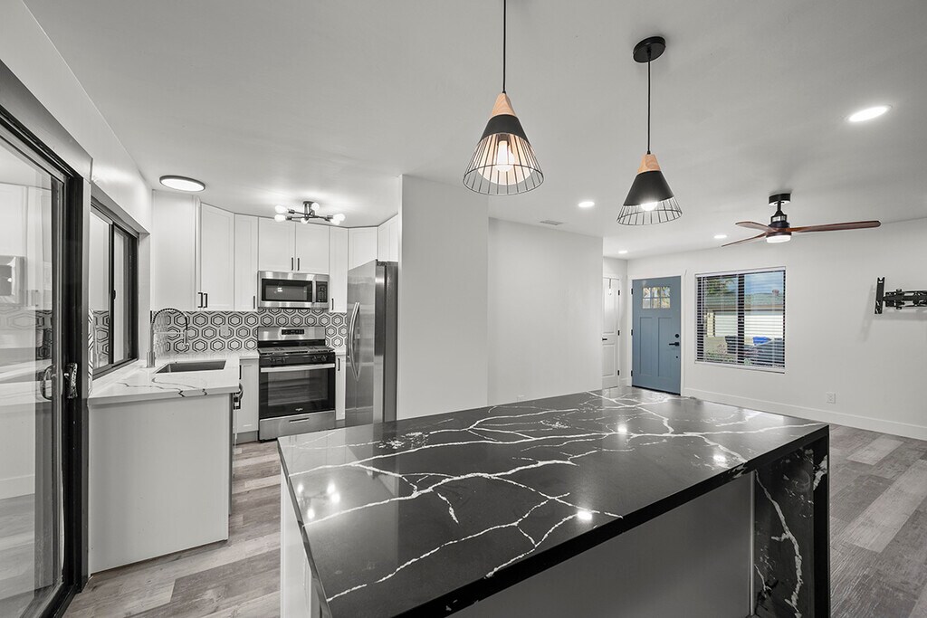 This fully updated home offers modern style, comfort, and flexibility. Originally a 2-bedroom, it now features a converted 3rd bedroom with its own private bath — perfect as a guest suite, office, studio, or second living area. The finished garage, with direct access to the home, provides even more options for additional living space. Inside, you'll find an open-concept layout featuring a brand-new kitchen, complete with stainless steel appliances, shaker-style cabinets, quartz countertops, and a custom island boasting a waterfall edge and a breakfast bar. Both bathrooms are completely remodeled with custom tile and rainfall shower heads. The large, flat backyard offers plenty of room to relax. Additional upgrades include: New roof and windows Waterproof vinyl flooring Fresh interior and exterior paint Tankless water heater Modern lighting and finishes throughout Lease Terms: How long is the lease: 12 months minimum to start. Does it come with furniture? No. Parking? Comes with a one Car Attached Garage included. Do you accept Section 8? Yes, but you still need to pass a credit, background check, and income requirements. Does this have an air conditioner? Yes, this has a Central Air Conditioner. Do you accept pets? Dogs and Cats are allowed with a $350 pet deposit. Are utilities included? Tenants pay all utilities. Appliances? All the appliances in the home will be left for the tenant to use, Fridge, Washer and Dryer included. Security Deposit at move-in? Usually the same amount as the rent. What credit score do I need? Typically a 700 or better score. Do you accept people with evictions? Absolutely no, no exceptions. Do you accept co-signers? No. Do you accept no credit? No. Do you accept people without a social security number? No. What is the income requirement? Typically it is two times the rent amount. You must submit your last two months of pay stubs if you are an employee. If you are collecting payments from a 3rd source (like disability, SSI, Section 8, or Retirement), you must submit a benefits letter stating how much you receive every month. If you are considered an Independent Contractor or Self-Employed, I will need your last two bank statements. Please send those to our email.