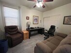 All utilities are included in this fully furnished 2 bedroom home with an office that can be used as a 3rd bedroom. Short and long term lease options available, minimum stay is 30 days, home is fully equipped with all the conveniences and comforts of home. House has all tile floors, 2 bedrooms have queen size beds, linens, furniture and privacy with the split floor plan. 2 bathrooms have towels and all essentials excluding personal care products. There is a laundry room with washer and dryer and a fully stocked kitchen with all your cooking tools and essentials. Tv area equipped with comfortable couches and recliners, the office is set up with a large desk with ample work space and patio furniture for enjoying Sierra Vista's beautiful fall weather. Tenants have full access to the house but will not have access to the garage. There are 2 parking spots on the driveway and additional parking on the side of the home. HOA fees are included in rent, one dog may be considered with owner approval, tenants have full access to the large and enclosed back yard, home is located on the north side of town in the popular Valiente subdivision close to shops and Ft Huachuca.