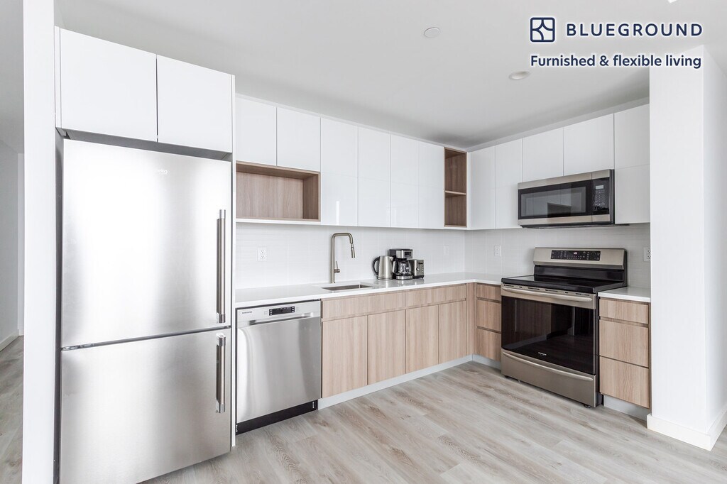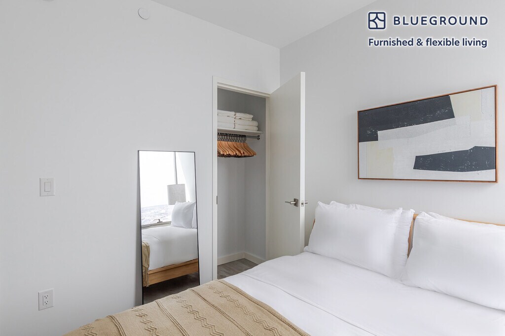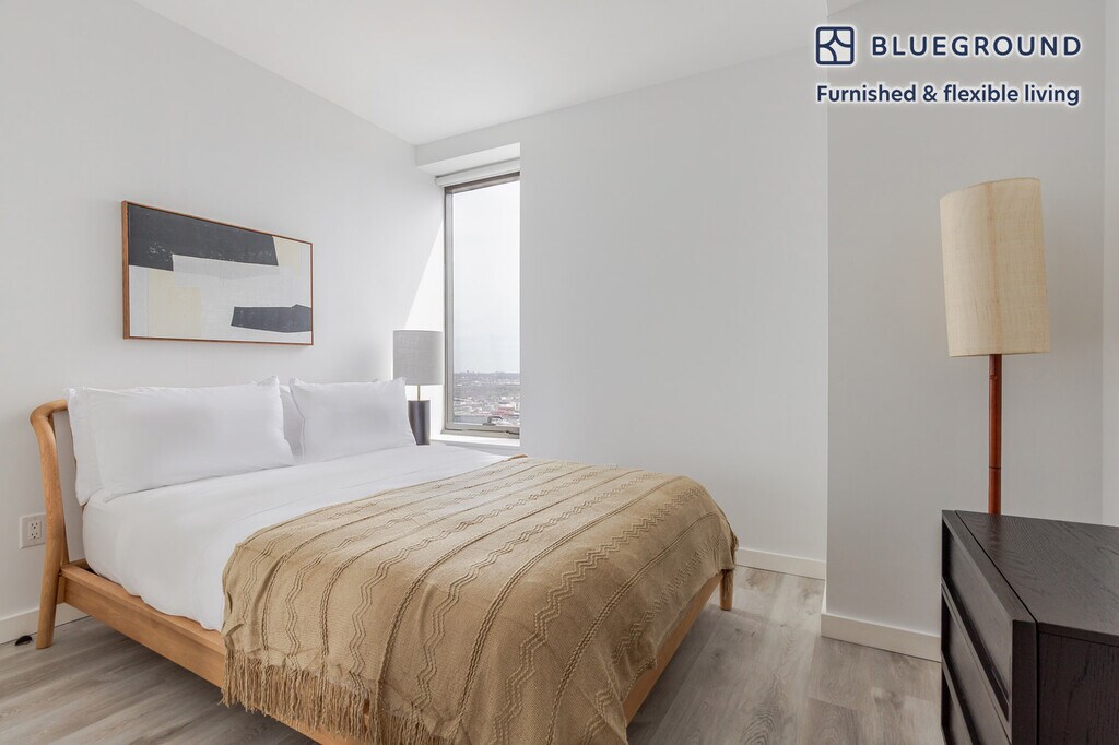 Show up and start living from day one in New York with this cozy one bedroom Blueground apartment. You’ll love coming home to this thoughtfully furnished, beautifully designed, and fully equipped Greenpoint home with stunning high floor views over the city. (ID #NYC1813) The advertised rate of $4,950/month is the lowest available price, based on a 11 month(s) and 29 day(s) stay with a move-in date of January 22, 2026. Rates vary depending on the duration of stay, season, and other parameters. For exact pricing and additional pricing components, please visit our website and enter your desired move-in and move-out dates. The rate is applicable when billed upfront; it can be higher if billed in multiple payments. Brokers are welcome to reach out. Were you looking for an unfurnished lease? Try Blueground instead and upgrade from unfurnished to furnished living: - Furnished at rates comparable to unfurnished - No setup or furniture costs - save thousands - Move-in ready - save time, just bring your suitcase Designed with you in mind Thoughtfully designed with bespoke finishes, modern furnishings, and a fully equipped kitchen, you’ll enjoy that “I’m home” feeling with this Blueground apartment. Whether you’re lounging in your pretty living room streaming the latest and greatest entertainment on the smart TV or premium wireless speaker, or getting some well-earned rest on the superior quality mattress with luxury linens, you’ll fall in love with everything this Greenpoint apartment has to offer. This apartment also offers in-apartment laundry. Sleeping arrangements Queen Bed, 63in/160cm Amenities Building amenities unique to this one bedroom apartment include an on-site: - Basketball Court - BBQ Area - Doorman - Dryer - Elevator - Game room - Swimming pool - Washing machine - Lounge - Pets allowed - Playroom - Sauna - Tennis court Arrival and ongoing support The entire apartment is yours to enjoy! Throughout your stay, you’ll have access to our Client Experience team through the Blueground App. You can schedule additional cleanings, submit maintenance requests, and view our neighborhood recommendations with just a few taps. We’ll share all details upon confirmation of your stay. Ideally Located This furnished apartment is located in Greenpoint, a historic Brooklyn neighborhood that is known for its eclectic food scene and quiet, tree-lined blocks. This lovely area is frequently used as a backdrop for TV shows, thanks to its proximity to Long Island City's Silvercup Studios. Greenpoint's food scene is concentrated along Manhattan Avenue, one of the neighborhood's major thoroughfares. You can find everything from world-renowned donuts to vegan comfort food to authentic Polish cuisine, as well as plenty of bars serving craft cocktails. On the weekend, head to Transmitter Park for gorgeous East River views or walk to trendy Williamsburg to check out hip boutiques and art galleries. Greenpoint is served by the G line of the New York City subway system. Other things to note Building amenities may have an extra cost. This Blueground apartment has flexible lease options, allowing you to book it for one month, a year, or more. Pets are welcome, though weight limits and breed restrictions apply and may incur fees. Brokes CYOF. We take great pride in ensuring every photo displayed is shot in our own units with our actual furnishings. That said, we regularly refresh our decor and furniture arrangement, which may differ from what’s pictured. [GO]