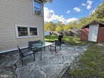 The property offers a comfortable open floor plan with a combined kitchen, dining, and living area, plus a small open TV room for added versatility. A full bath is conveniently located on each floor. Additional highlights include a four-season room, laundry area, and newly installed carpet. Outside, enjoy a fenced yard, patio, and a handy storage shed. This home is ready for you to move in and enjoy!