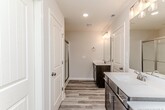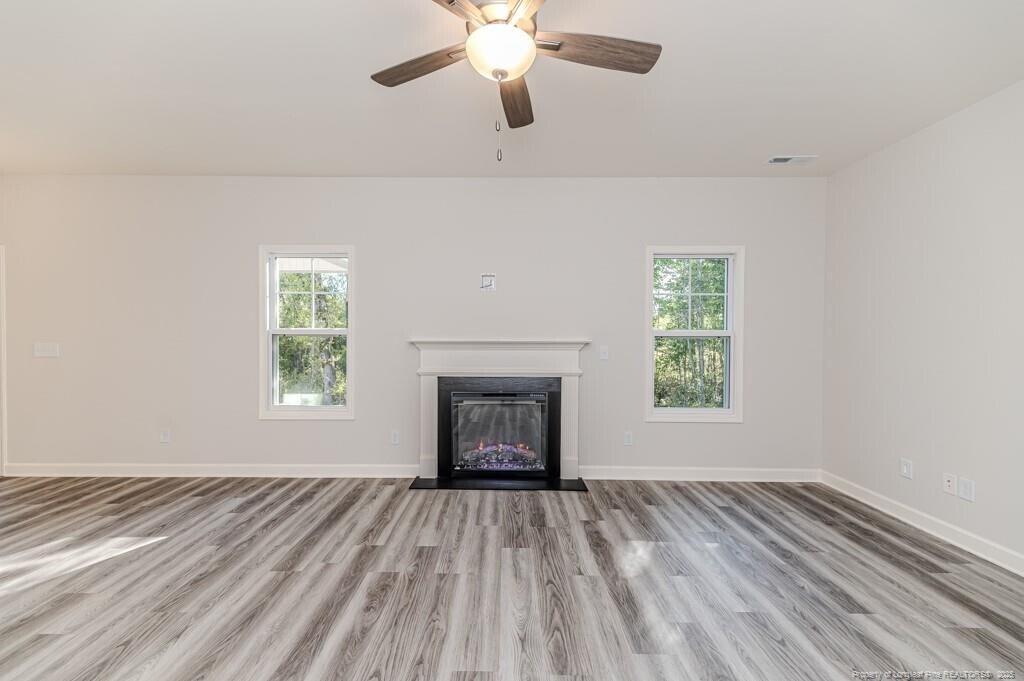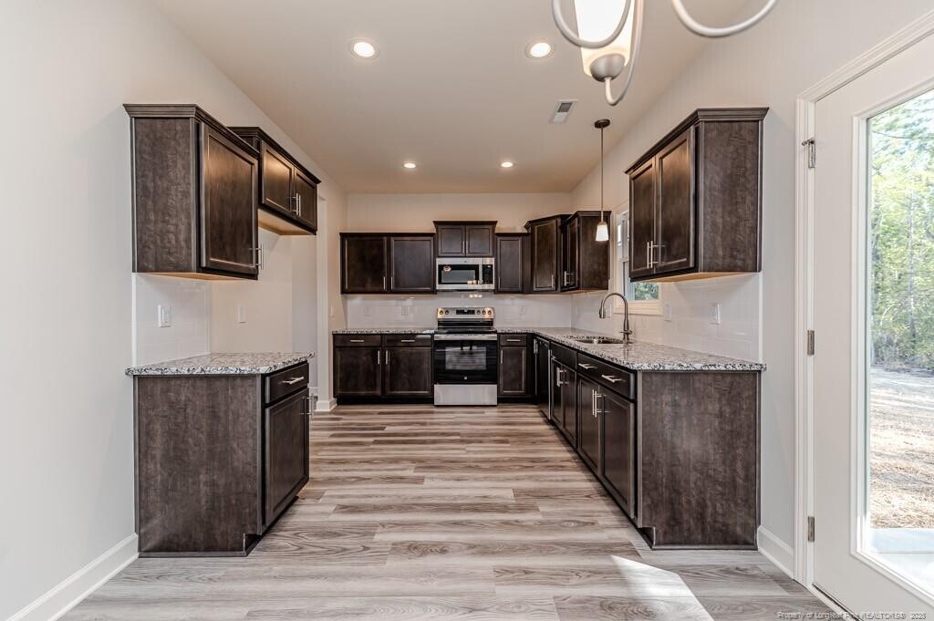 This beautiful, brand-new 2-story home on a quiet cul-de-sac offers a superb layout for modern living. A fabulous covered front porch invites you into a spacious foyer that leads into a formal dining room. The open-concept kitchen and family room provide ample space for entertaining. The kitchen is well-appointed with stainless steel appliances, sleek granite countertops, and plenty of counter space for meal prep. The great room features a cozy electric fireplace, perfect for warming up during cooler evenings. Upstairs, you’ll find all four bedrooms, including the owner’s suite. The owner’s suite is a true retreat with an enormous walk-in closet, dual quartz vanities, and a large, walk-in shower. For outdoor enjoyment, there is a charming covered back patio, ideal for relaxing or entertaining guests, and a fantastic wood privacy fence.