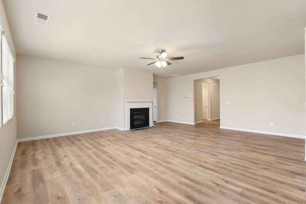 True step free living, all-new flooring and fresh paint, and an open-concept 4 bedroom / 2 bath ranch built in 2018 — this is the easy, modern rental everyone is looking for. From the moment you walk in, you get a bright, wide open floor plan with a huge family room and cozy fireplace that flows right into the kitchen and dining area, making it perfect for everyday life and entertaining. The kitchen features tons of cabinet space, a walk-in pantry, granite countertops, a large island, and brand new stainless steel dishwasher with 3rd rack and a new gas range! The home sits on a level lot with a covered back patio and wooded backyard view, giving you a private, relaxing outdoor space you can enjoy year-round. Inside, durable and beautiful LVP-style flooring runs throughout the main areas, with 2" faux wood blinds on every window for a clean, finished look and easy light control. The true no-steps ranch layout means all 4 bedrooms and 2 full baths are on the main level—no stairs to deal with, ever. The oversized owner’s suite offers a spacious bathroom with double vanities, a separate large shower, garden tub, and plenty of room to spread out. An automatic garage door opener and brick-front exterior add convenience and curb appeal. With fresh paint, new flooring, updated appliances, and a functional open layout, this home is truly move-in ready—just bring your furniture and start enjoying easy ranch living. 600 minimum FICO Score 3x monthly rent for income. Pet fee of $450 per pet. $95 app fee per adult. Minimum 18 month lease, optional longer lease available with a rent escalation. Not owned/managed by a hedge fund. Ready for move in now!