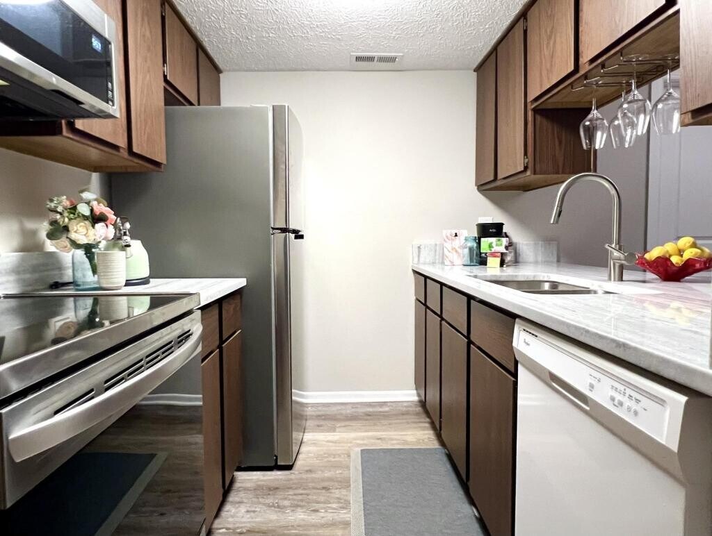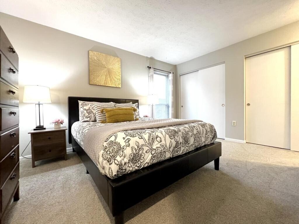 Second floor condo featuring 2 bedrooms and 2 full bathrooms, with a private patio, designated car port parking and small storage unit! This is a quiet complex, with trash, lawn care, appliances and snow removal included . Mid century modern kitchen with new granite counter tops and stainless appliances, air fryer stove and eat-in bar. The primary bedroom has an en-suite bathroom and double closets. The second bedroom is spacious with ample closet space. Close to Taylorsville MetroPark, and walking distances to the Vandalia pool. Conveniently located close to I70-I75 interchange, and countless restaurants and shopping options! Brand new furnace and central air! Available for showings 2/27. 20 minutes from Wright Patterson Air Force Base. Application fee $35 per adult. Section 8 and voucher programs not accepted. Absolutely no pets are permitted on or in the property. No smoking in the property. Full credit and background check. Applicant Guidelines: Gross monthly income of 3x the monthly rent preferred. Credit score of 600+ preferred. Tenant Responsible or electric and water.