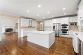 Welcome to your dream home! This RARE and exceptional property is located in the highly desired swim/tennis Glen Abbey subdivision,offering one of the BEST and LARGEST lake lots in the community. This elegant 4-sided brick home features a grand two-story foyer and an open,light-filled floor plan with 18 windows on the main level overlooking the serene lake. The expanded deck,now double its original size,provides the perfect setting for entertaining with gorgeous lake views. Inside,the home showcases refreshed and refinished flooring throughout,adding a polished touch to every room. Enjoy the spacious dining room that easily seats 12+,ideal for hosting. The NEWLY REMODELED KITCHEN features an electric cooktop,double oven,BRAND NEW QUARTZ countertops,and abundant cabinetry. A cozy family room with a fireplace sits just off the kitchen,while two additional fireplaces enhance the living room and the master bedroom. All bathrooms have been updated or fully renovated,including the luxurious master bath with quartz countertops,double vanity,separate tub,frameless shower,and a large walk-in closet. A convenient bedroom and full bath on the main level complement the four bedrooms upstairs. The finished basement includes a bedroom,full bathroom,billiard room,and flexible spaces perfect for a gym or lounge,along with generous storage. The home sits on a professionally landscaped,level cul-de-sac lot and includes a 3-car garage. Glen Abbey amenities include 8 tennis courts,a pool,playground,pavilion,and a walking trail connecting to the Big Creek Greenway. All within minutes of top schools,Avalon,Downtown Alpharetta,GA 400,and more. Don’t miss this stunning lakefront home that truly has it all!