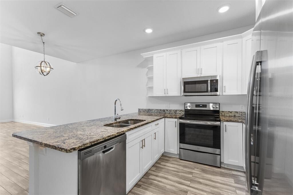 Welcome to this beautifully designed 2019 two-story townhome offering modern finishes and a functional layout in a rare boutique community of just eight units. Tucked along a nicely paved roadway,the setting provides a quiet and well-maintained environment with a more private feel than typical townhome developments. Inside,soaring vaulted ceilings create a bright and open living space,while the thoughtfully designed floor plan features a first-floor primary suite for added convenience and privacy. Upstairs,a versatile loft offers the perfect space for a home office,playroom,or additional living area. The home is finished with luxury vinyl flooring throughout the main areas,complemented by quartz countertops,soft-close cabinetry,and stainless steel appliances in the kitchen. Brand new carpet has just been installed,making the home move-in ready. A one-car garage and downstairs washer and dryer hookups add to the everyday ease of living. Each unit includes its own private rear deck,creating an ideal space to relax or entertain. This is a unique opportunity to own or invest in a low-maintenance property with modern features in a small,well-kept community. MLS# TB8501636