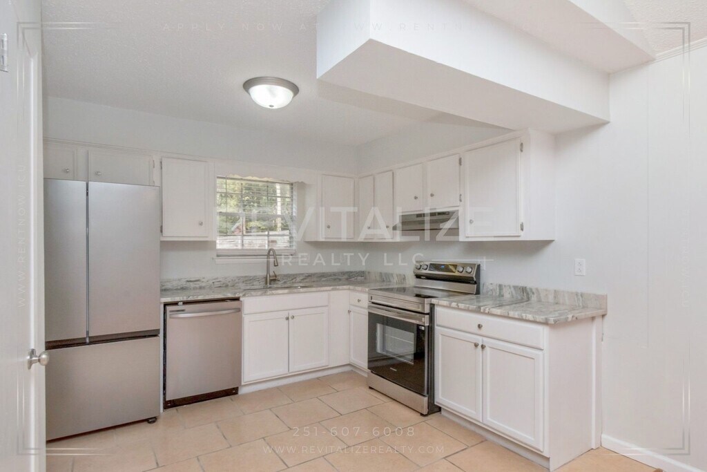 Welcome to this newly renovated 3-bedroom, 2-bathroom home located in Theodore, AL. This property boasts a range of modern amenities that ensure a comfortable and convenient lifestyle. The kitchen is equipped with a stainless steel refrigerator, dishwasher, and electric range, and finished with granite countertops. The home also features a dedicated laundry room with washer and dryer hook-ups. The interior is beautifully finished with tile and luxury vinyl plank flooring, adding a touch of elegance to the space. The home also comes with window treatments and ceiling fans for added comfort. Outside, you'll find a paved driveway leading to off-street parking, a private patio perfect for outdoor entertaining, and a porch for relaxing evenings. The property also includes a storage shed for extra space (the grey one is available for Tenant's use, the tan one is off-limits as it is for storing maintenance items), and a privacy fence for your peace of mind. This home truly offers a blend of functionality and style, making it a perfect place to call home. Situated in the cozy Deer River neighborhood: - 3 miles from Hollingers Island Elementary School - 5 miles from Katherine H Hankins Middle School - 5 miles from Theodore High School - 16 miles from University of South Alabama - 7 miles from Hollinger's Island Community Center - 9 miles from Walmart Super Center, Lowe's Home Improvement, and Cloverleaf Plaza Shopping Center - 10 miles from Bellingrath Gardens & Home - 13 miles from Costco Wholesale, Topgolf Mobile, and Dave & Buster's Mobile - 15 miles from Mobile International Airport You may apply online at: **Affordable Housing Vouchers are NOT accepted** For more information or to schedule a viewing, please call . Rent $1,650 Security Deposit $1,650 Application Fee: $75 (per applicant, non-refundable) Administration Fee: $100 (due upon lease signing) Pets: $300 non-refundable pet fee (per pet with Owner approval, up to 2 pets) Tenant is responsible for power, water, trash, and yard care. Disclaimer: Any lease commencing between the present date and February 28, 2026, will include a minimum term ending on or after February 28, 2027. Please inquire for additional details. All Revitalize Realty residents are enrolled in the Resident Benefits Package (RBP) for $35/month which includes liability insurance, credit building to help boost the resident’s credit score with timely rent payments, HVAC air filter delivery (for applicable properties), move-in concierge service making utility connection and home service setup a breeze during your move-in, our best-in-class resident rewards program, and much more! More details upon application. Residents will have access to the Online Portal by AppFolio, an easy, fast, and secure way to pay charges online, view payment history, and submit maintenance requests. Access your Online Portal from any mobile device by downloading the mobile app from the App Store or Google Play. All adult residents (18+) must be on the lease and are required to submit an application. Minimum requirements are 620+ credit score, verifiable income of 3x the rent or more, and must pass a background check. No exceptions. **Approval is at the discretion of the Landlord or Property Manager.** Managed by Revitalize Realty, LLC