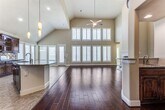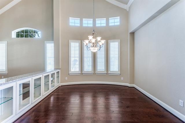 READY FOR MOVE IN NOW! Welcome to this beautifully designed home with soaring ceilings, wood floors, a curved staircase, and plantation shutters. Enjoy spacious formal living and dining areas, a large family room with wet bar, fireplace, and towering windows, plus an open island kitchen with granite counters, Knotty Alder cabinets, and stone backsplash. The private primary suite features patio access, dual sinks, a jetted tub, oversized shower, and walk-in closet. Upstairs offers generous bedrooms with walk-in closets, plus a large game room and black out painted media room. Relax under the covered patio overlooking a huge, peaceful backyard. With a 3-car garage, top-rated schools, and easy access to Highways 75, 380, 121, and the Dallas North Tollway, this home combines luxury, space, and convenience.