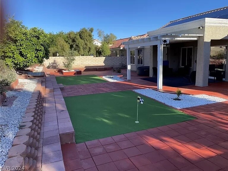 BEAUTIFULLY REIMAGINED 2 bedroom, single-story home in a CHARMING Summerlin community minutes away from shopping and recreation! Low-maintenance desert landscaping, stunning community pool, spa, and amenities, and an oversized two-car garage. The interior boasts designer-selected two-tone paint schemes, beautiful vinyl plank flooring, and a dazzling light package. CHEFS dream kitchen equipped with shaker cabinetry, GORGEOUS Granite countertops, and stainless steel appliances. The backyard offers a covered patio, fruit trees, two putting greens, and a BBQ! Newer water heater, new washer and dryer, and a new water conditioner! This home is move-in ready.