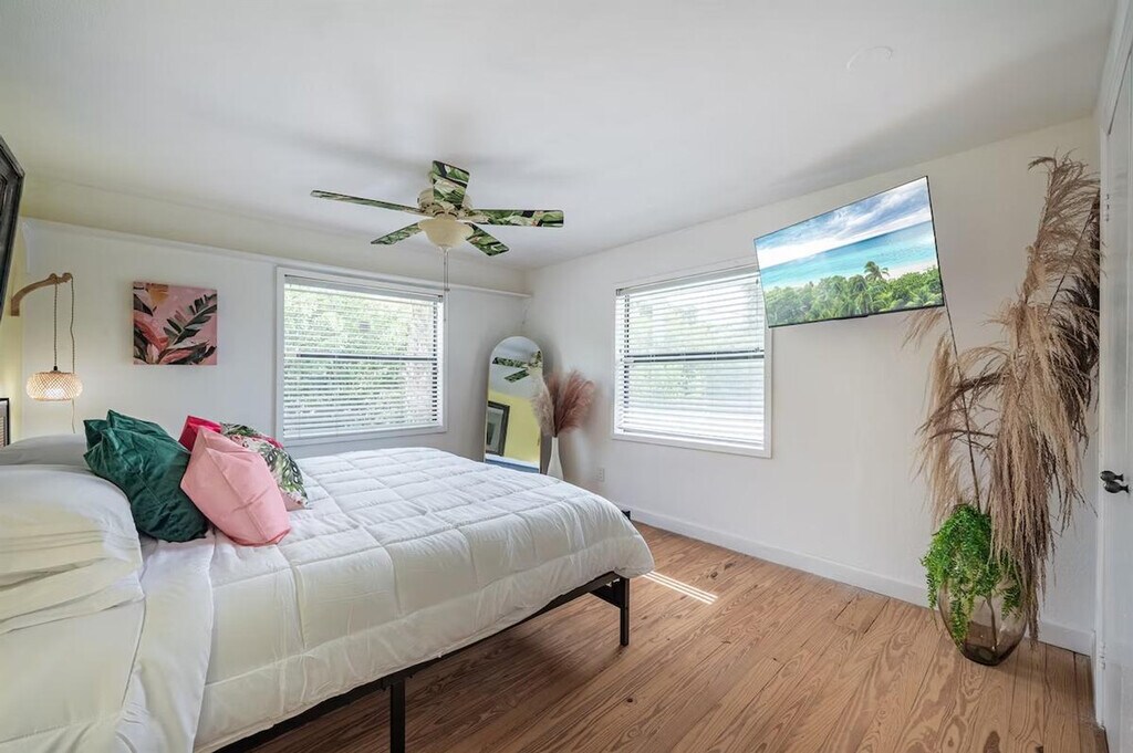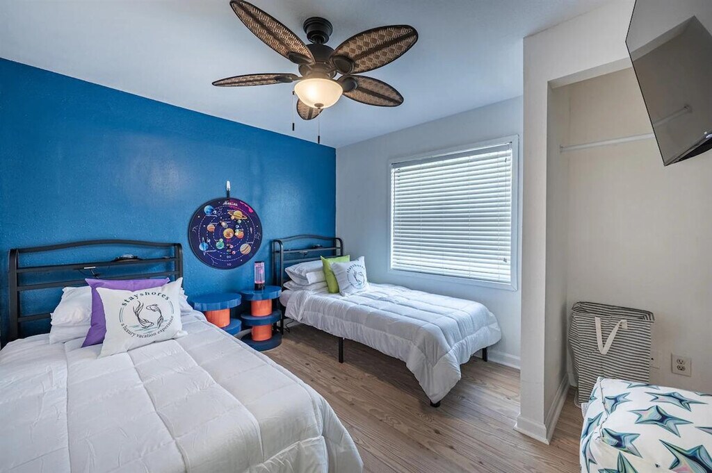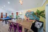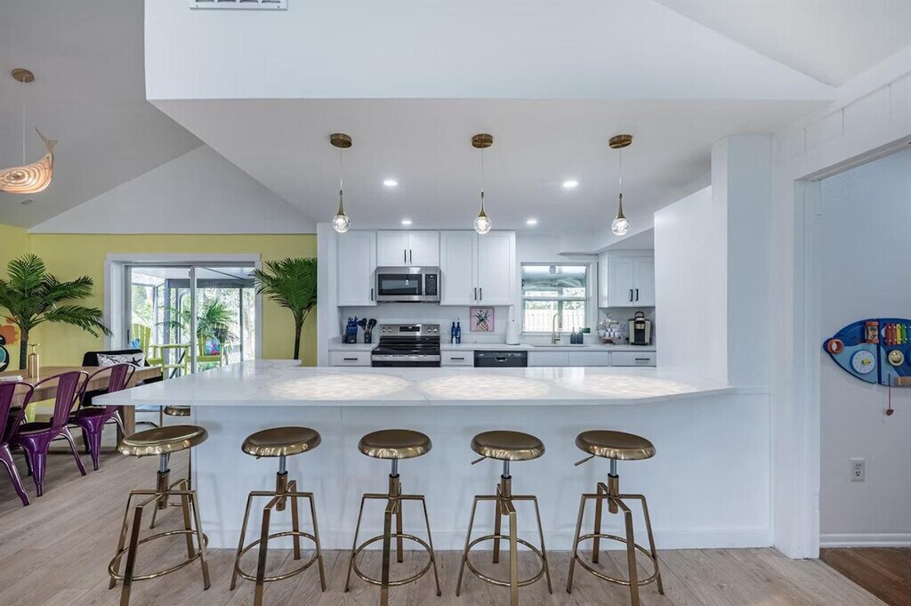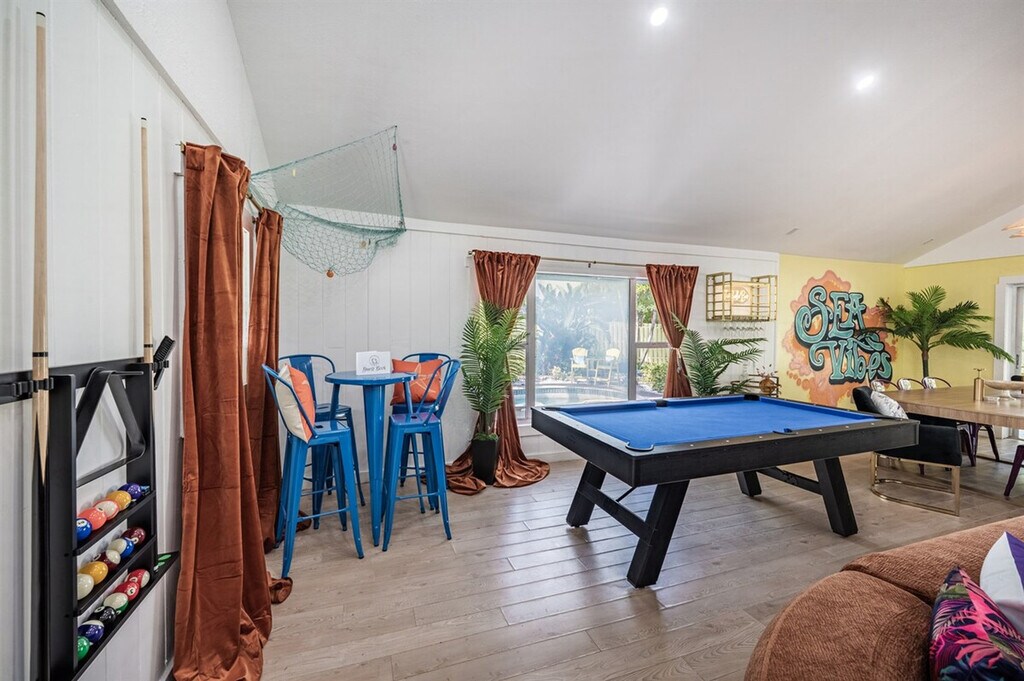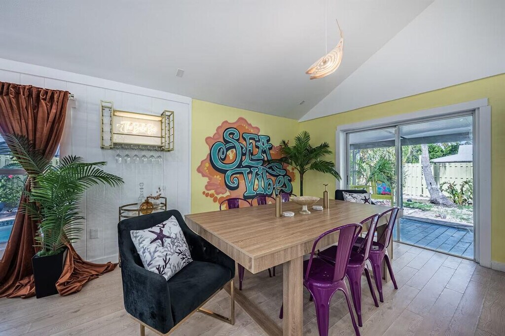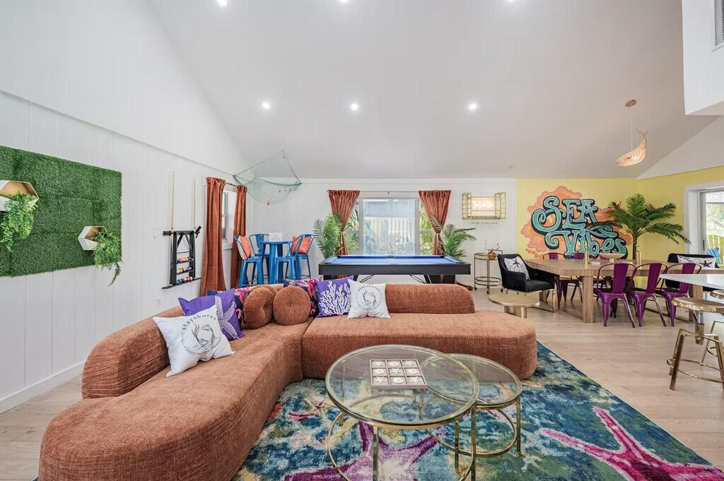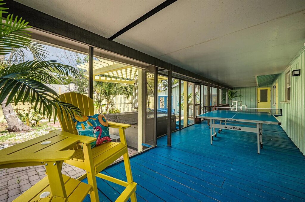 Feel at home in this spacious 7-bedroom coastal retreat in Bradenton, FL, just steps from the beach. This home sleeps up to 16 guests and features 4 baths. The main living area flows into a fully equipped kitchen and dining space. Enjoy a heated pool, hot tub, covered patio with outdoor dining, and fire pit. Inside, you'll find a game room with a pool table and ping pong, plus a playful bunk room with a ball pit. The home is stocked with basic toiletries, bed linens, kitchen necessities, cleaning supplies, and laundry detergent. Pets are welcome with a fee of $150 plus taxes and fees per pet, up to a maximum of 2 pets allowed. Steps away from the beach, this space is built for fun and relaxation. Guests have exclusive access to the entire property and all amenities. [SI]