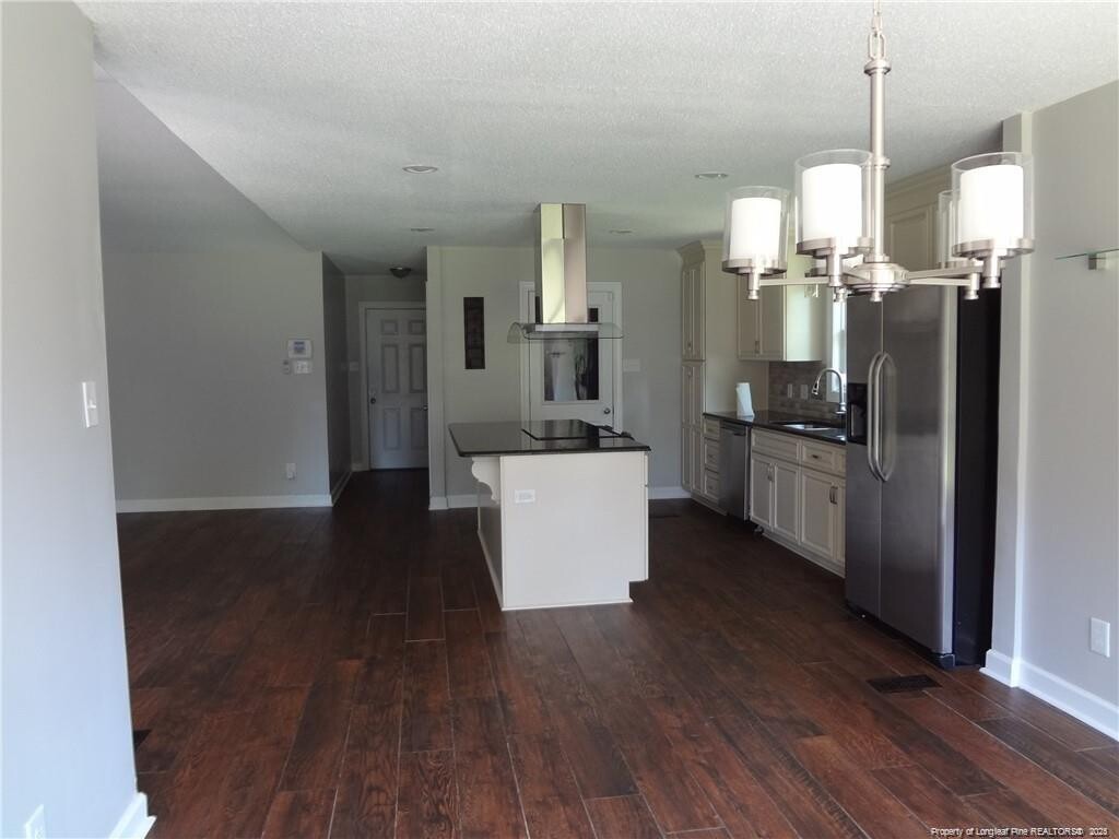 -3 BR/2 BA ranch style home, open floor plan, kitchen island, wood fireplace, 1 car garage,w/lots of storage space, washer, dryer, huge back yard, fully fenced, small pet!