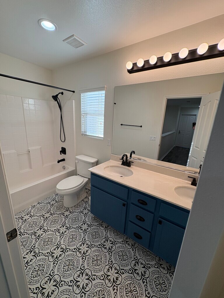 Welcome to this bright and beautifully maintained 4-bedroom, 3-bathroom single-family home offering approximately 2,238 sq ft of living space in a desirable San Marcos neighborhood. From the moment you arrive, the home's charming exterior, manicured landscaping, and welcoming front entry make a great first impression. Inside, enjoy luxury vinyl plank flooring throughout the main living areas, creating a modern, cohesive look. The open layout features a spacious living room with abundant natural light and a cozy fireplace, flowing seamlessly into the dining area perfect for entertaining or everyday living. The updated kitchen features striking blue cabinetry, granite countertops, stainless steel appliances, ample storage, and recessed lighting. It opens to the family room and dining area, offering both style and functionality. Upstairs, you'll find generously sized bedrooms and a spacious primary suite with a large walk-in closet and a well-appointed ensuite bathroom featuring a soaking tub, separate glass-enclosed shower, and dual vanities. Step outside to a private, low-maintenance backyard designed for relaxation and entertaining. The space includes a large concrete patio, and terraced landscaping perfect for outdoor dining, play, or quiet evenings at home. Appliances such as the washer, dryer, and refrigerator are included for tenant convenience. The home features an attached two-car garage providing secure parking and additional storage. Ideally located near local parks, shopping centers, dining options, and schools, the property also offers easy access to nearby freeways, making commuting and everyday errands convenient.