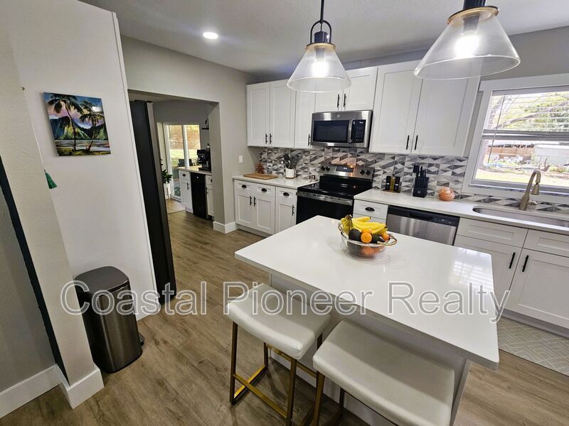 Ready for New Tenants on June 1st – Stunning Move-in Ready 3 Bedroom plus Den, 2 Bathroom Home in the Elizabeth Court Community of Tampa. You will be amazed by all the Designer Touches, Finishes, and Upgrades! Upon entering, this Home feels spacious and grand. Immediately to the left and behind French Doors is your private Office or Den with a striking Accent Wall. The large Dining Room flows directly into the Designer Kitchen. The Kitchen has it all – Stainless Steel Appliances, a geometric Tile Backsplash, Quartz Counters, plenty of white Shaker Cabinetry for storage, a gourmet Coffee Station with Wine Refrigerator, and even an Island perfect for barstools. You will spend many hours relaxing in the oversized Living Room. Hidden by Sliding Barn Doors is a full-size Laundry Room with Washer and Dryer. A Full Bathroom with Walk-in Shower and handsome Tilework completes the Living Room. All 3 Bedrooms are located on the other side of the Home and feel Light and Bright. They are in immaculate condition and have Ceiling Fans and Double Closets. The Bedrooms share another stylish Full Bathroom with 2 Sinks and a Glass Enclosed Shower. You will enjoy the Outdoors year-round from the Covered and Screened Rear Patio. So much space for an outdoor Dining Room and Sitting Room. The Patio overlooks a considerable Fenced Backyard with a Storage Shed. Great location just off E Busch Boulevard with easy access to Shopping, Restaurants, Entertainment, and Busch Gardens. Sorry – No Pets permitted. The property is Professionally Managed and Maintained. There is a one-time $150 Administration Fee, a $75 Application Fee for each applicant 18 years or older. Applicants should have a minimum 650 credit score, Gross Monthly Income of at least 2.5 times the Monthly Rent, and stable Rental History (no Evictions or Tenant Collections). Amenities: Screened Porch, Large Backyard, Separate Office