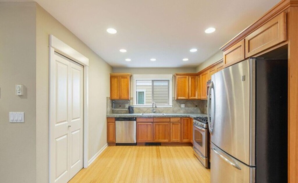 Featuring bamboo floors and an open layout, this 3 level home comes with a ground-floor bedroom that is perfect as an office for WFH scenarios. Built-in kitchen comes with a stainless steel dishwasher and other appliances to make chores a breeze! A gas fireplace with a custom tile hearth sits right by the wide balcony. Enjoy views of the Olympic range on clear days! Upstairs are 2 comfortable bedrooms with vaulted ceilings and recessed lights that lend an airy and relaxed feel. The master bedroom highlights an ensuite bath for additional privacy, and a balcony with views of your charming, future neighborhood. This home is within walking distance of groceries, shops, dining options, and QFC. Rated schools are less than a mile away, making this address ideal for those looking to settle long-term. Public transport is also accessible with the D-line and #40 bus steps away! Fireplace is for decorative use only and cannot be used without consent from Belong. Our homes come as-is with all essentials in working order. No smokers please. Pets are welcome on a case-by-case basis with an additional pet deposit/rent. Contact us today for a tour!