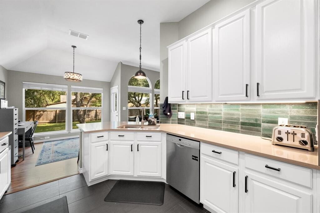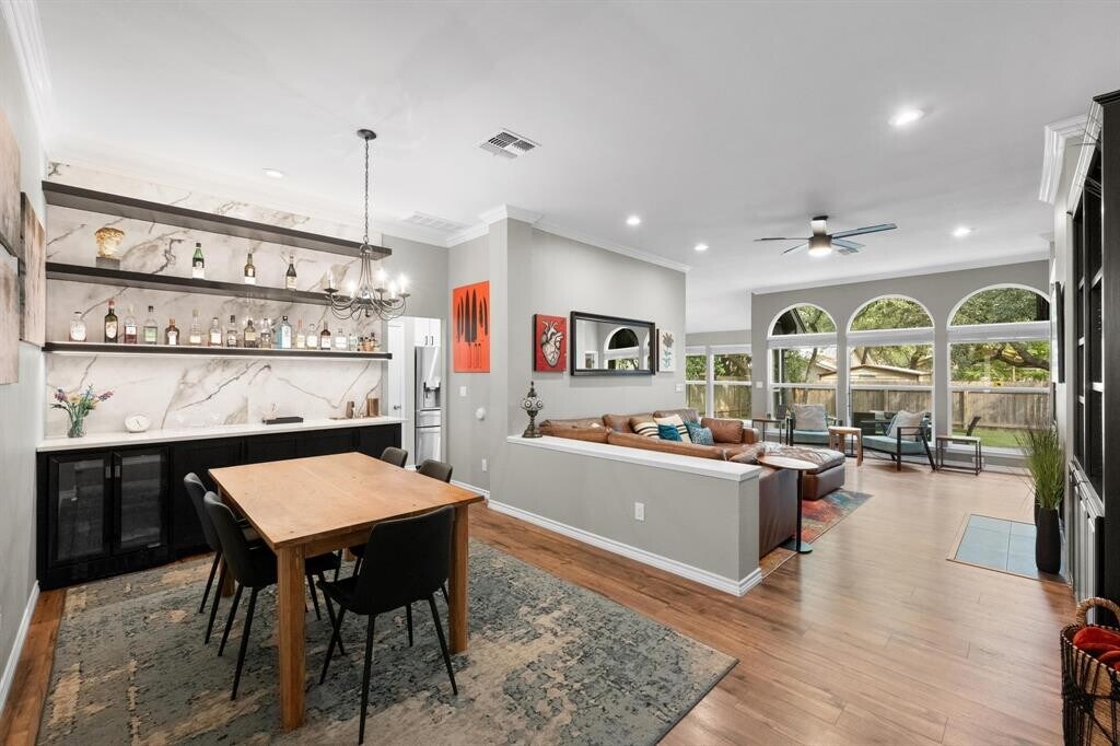 Absolutely stunning modern remodel w a sleek built in bar nestled under a canopy of shady Oak trees in the highly coveted Cat Hollow & Brushy Creek area feeding into highly acclaimed RRISD! This house is absolutely adorable & has a boutique hotel vibe thats complimented by tons of fabulous upgrades including: New windows, New HVAC, New insulation, gorgeous wood Metro flooring thoughout (no carpet!), tall ceilings, crown molding, built in storage, modern ceiling fans & lots of floor to ceiling windows that bring in tons of natural light making this a bright & happy home! The gormet kitchen features 20+ cabinets, Quartz counters, contemporary backsplash, big walk in pantry, deep farm sink w goose neck faucet, stainless steel appliances w 5 burner gas stove & matte black hardware! You will love the primary bedroom that has a bay window overlooking the peaceful backyard, tall barn doors w industrial hardware lead to a truly spa like bathroom that boasts double Quartz vanities w custom mirrors & lighting, beautiful octagonal floor tile, oversized walk in shower bench seating, mudset penny tile & deco tile surround, double shower heads, seamless shower glass, built in storage cabinets w glass doors & a big walk in closet w built in dresser storage & ironing board! Its truly a dream! The 2nd bath is equally as luxurious w new cabinets & marble vanities! This home has the best hang out area featuring a swanky built in bar w XL Porcelain tile, floating shelves w back lighting, Quartz counters, built in wine fridge & lots of extra storage! It will feel like you are on vacation every day! Washer/dryer/fridge all convey& THERE IS ALSO A FULLY FURNISHED OPTION & NEGOTIABLE LEASE TERMS IF NEEDED! Close to the new Apple Campus, DELL, Domain, the highly acclaimed Avery Ranch Golf Course, Brushy creek Lake & hike& bike trail & tons of amazingly yummy restaurants! You are just 20 min from Downtown Austin & UT & DT Round or the Square in Georgetown as well! What a great place to live!
